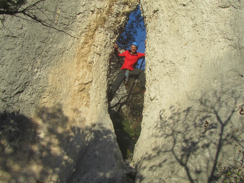 Ko sva po treh urah lutanja končno ugotovila kje je Veiliki toranj, je plezališče že okupiralo AO Rašica, ki je izvajajo alpinistično šolo. Tako sva potem še celo popoldne uživala v čudovitem plezanju. Skala je odlična, sploh v težkih smereh, kamor pa najini, trpljenja še ne vajeni prsti, žal še ne zmorejo. Seveda pa je bil najlepši razgled z vrha špičastih stolpov. Posebnost je tudi precej veliko naravno okno, ki leži med dvema skalnima stolpoma in pa kot kapnik vitek skalni stolp imenovan Sveča. Nanj pa je plezanje prepovedano. Navkljub velikosti dolini, je ves navrtan del doline zelo blizu skupaj – vsekakor pa ne 3 ure hoje, kot sva si začinila midva. Prostora za nove smeri pa je tudi še ogromno.