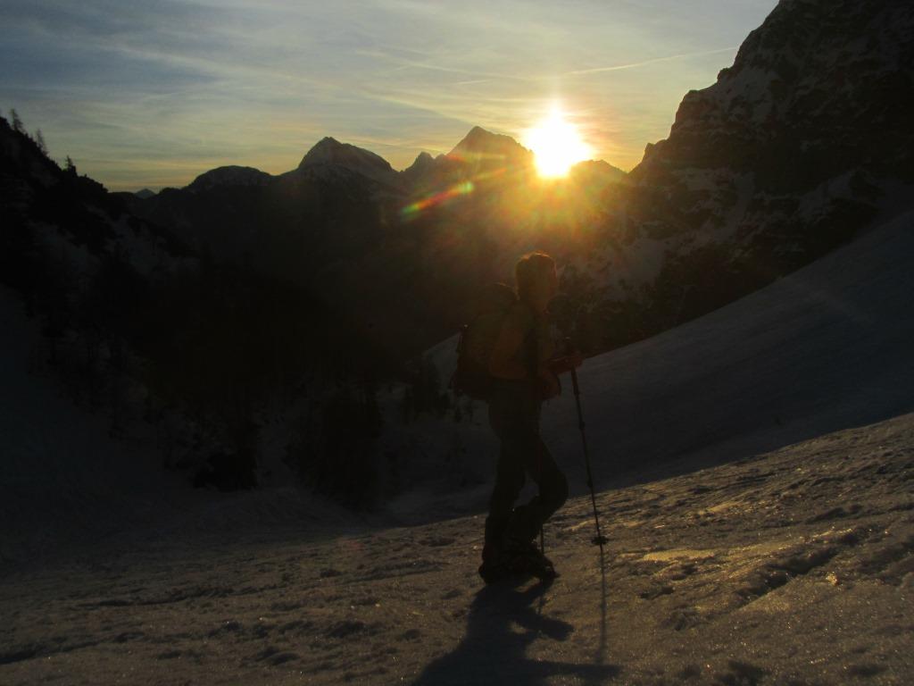 Z Marijo odrineva s še praznega parkirišča na Ljubelja ob pol šestih. Noč še osvetljuje polna Luna, ki pa jo kmalu zamenja dan. Pomladanski ekvinokcij je za nami in dan je sedaj že res dolg. Pot proti Zelenici je še prijetno pomrznjena. Zato hitro napredujeva.