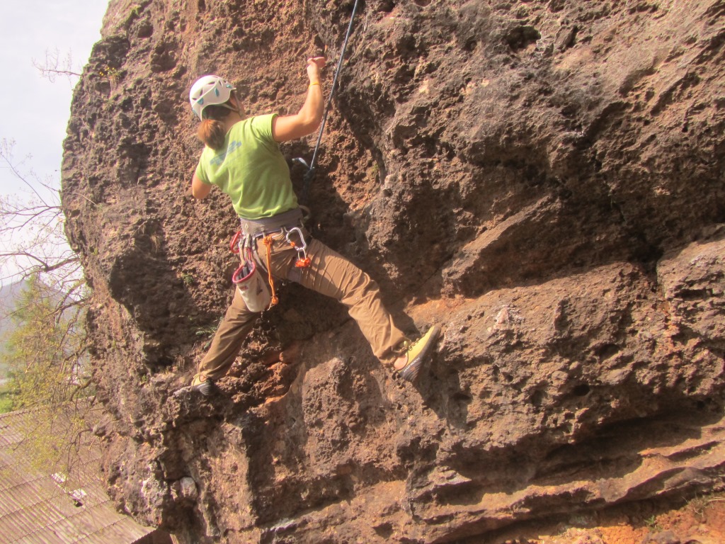 Danes je bilo v Kamnitniku prav prijetno toplo. Dodatno pa k “topli skali” pripomore tudi južna lega plezališča. Zaradi vseh naštetih udobnosti, pa je v plezališču pogosto gneča. Vse smeri v Kamnitniku so zelo kratke (dolge do 10 m, večinoma še manj). Zato povsem zadostuje že 30 m dolga vrv. S Kajo sva v plezališču preplezale vse lažje smeri (Raz, Ovčka, Kajmak, Klini, Culoir ..). Od vse naštetih se mi zdi najbolj zanimiva smer Culoir, ki je res kratka, ampak postreže z zelo zanimivim kaminskim plezanjem. Treba je dati noge skorajda v špago. Potem pa gre skorajda brez rok. Če ne bi bilo tega kanala, ki omogoča kaminsko plezanje, pa bi smer imela težavnost vsaj 6a.