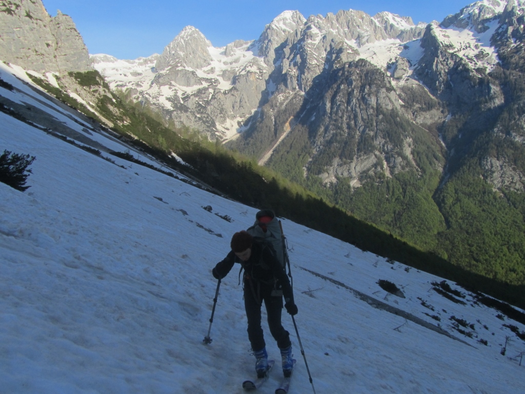 Obilne snežne padavine v začetku leta bodo letos še dolgo v poletje omogočale snežne radosti v visokogorju. Po prvomajskem poslabšanju se je vreme končno vneslo in zato je bil čas da gremo nekam na lepše. Dejstvo je da si je Kaja od vseh nas ture najbolj želela. Potem pa je po nekem čudnem spletu nesrečnih “naključij” ostala na žalost doma. Tako sva se s Tino na pot odpravila sama.