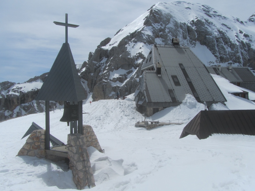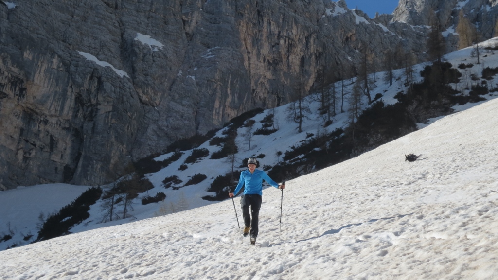 Ker sva hodila res počasi in s precej postanki, sem se sam odločil da bom med tem časom treniral. Tako sem tekel po snežiščih gor in dol. Kasneje pa sem bil v svojem početju bolj koristen, tako da sem nesel Tine smuči. Nazadnje pa sem skorajda podvojil višince tako da sem na neko točko nesel svoj nahrbtnik, odtekel navzdol po Tininega in potem nazaj gor. Na koncu pa je pobegla čelade poskrbela da je bilo do Kredarice namesto običajnih 1600, kar 2400 višincev.