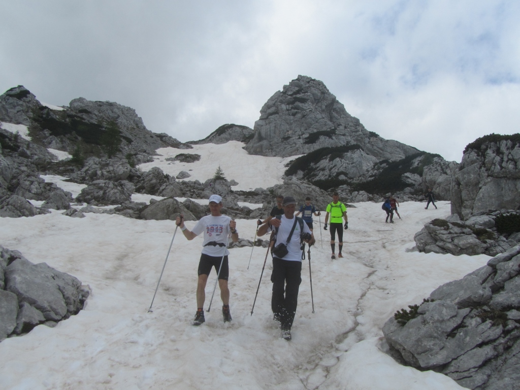 Potem pa smo zavili na pot čez Kurico. Pod Kurico je še eno strmo snežišče, ki je lahko nevarno za zdrs. Zato naj tu cepin ne bo odveč. Mi pa smo imeli srečo da je sonce toliko zmehčalo, da se je dalo priti čez brez zimske opreme. Potem pa je sledil le še prijeten sprehod v dolino. V družbi številnih prijateljev je minilo kot bi mignil. Pravzaprav bi mi ustrezal še en vzpon na Triglav danes. Kar nekaj Francijevih spremljevalcem je opravilo s po dvema vzponoma, kar je že nek podvig samo po sebi.