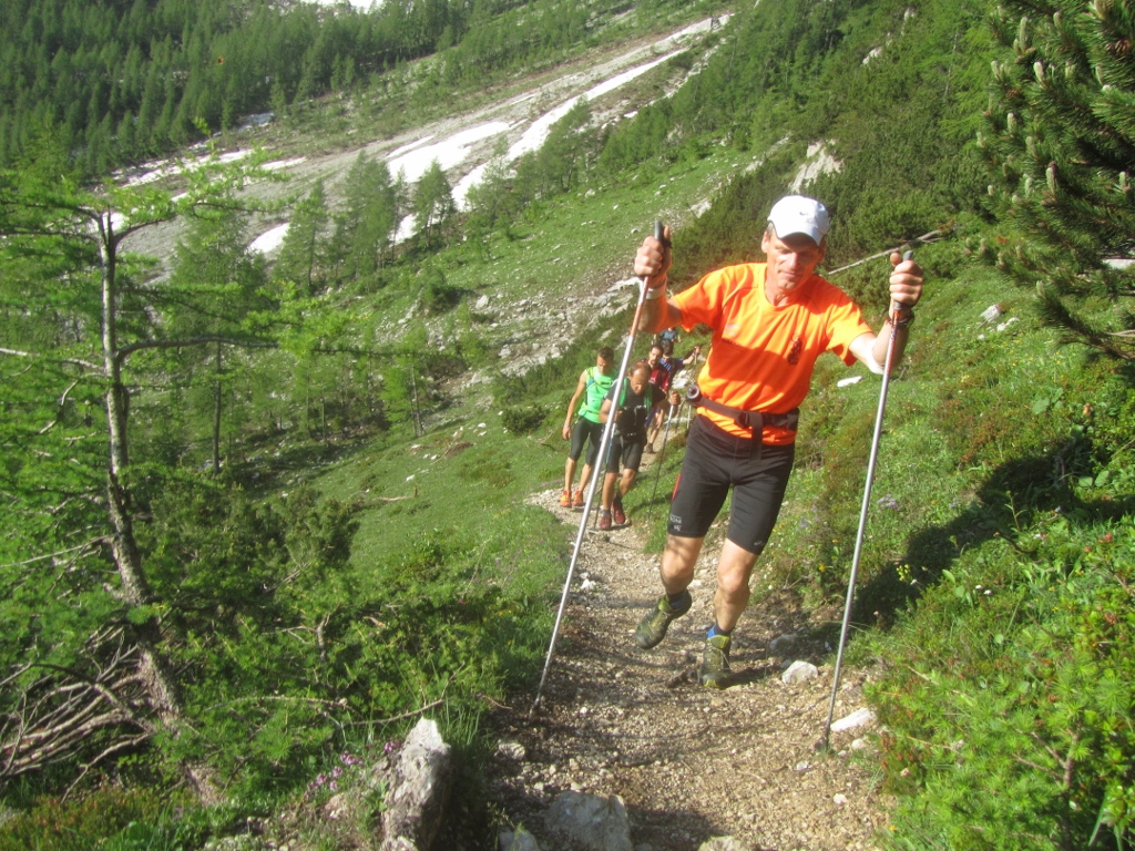 Glede na slabo vreme v zadnjem času, je bilo danes v Krmi nenavadno vroče. Ob štirih zjutraj pa je bilo na Kredarici že 7° C. Francijev tempo pa tudi ni bil kar tako. Sicer pa je sama dolina povsem spremenjena. Zaradi žledoloma je normalna markirana pot domala neprehodna. Franci je na lastno pest utrl novo pot skozi bukovlje, sicer bi bil podvig povsem nemogoč. Prav tako je postavil začasne odsevne markacije, za pomoč pri hoji ponoči. Do Malega polja smo nadaljevali po običajni planinski poti. Potem pa smo po bližnjici usekali direktno do Prgarce.