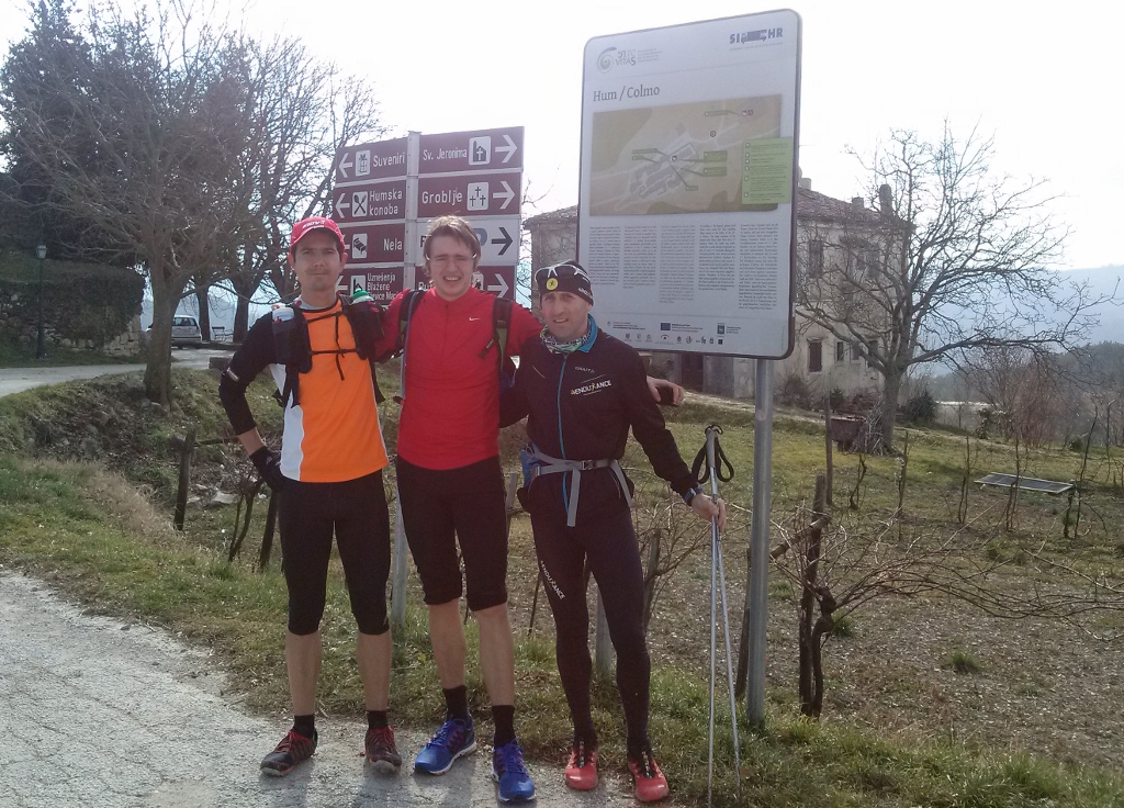 Prvih 10 km smo tekli skorajda povsem po ravnem, ves čas ob reki, ki smo jo nekajkrat morali tudi prebresti. Razdalje se tu vlečejo in teren je ves čas tako podoben da si ga je težko zapomniti. Po uri in pol smo pritekli na prvi klanec na progi – na grič Hum. Sledil je krajši spust ter vzpon do vasice Draguć, ki je Marjanu ostal v “dobrem” spominu, ker je tu lani (po točno skorajda 100 kilometrih) odstopil.