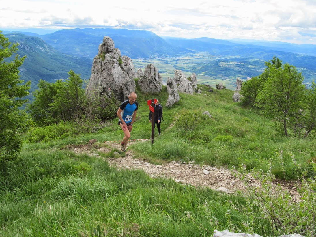 Proga je postala vse bolj strma. Tekači, ki so se na začetku preveč zagnali, so kmalu začeli plačevati davek. Moram pa povedati da je bila proga res odlično označena s trakovi ter z oznakami razdalji do cilja in premagane nadmorske višine. Na mestih kjer smo tekli čez travnate jase pa je bilo še vse lepo pokošeno. Pohvale organizatorjem! Človek bi ob tem kar užival, pa je bila tekma prehitra in ni bilo časa za to.