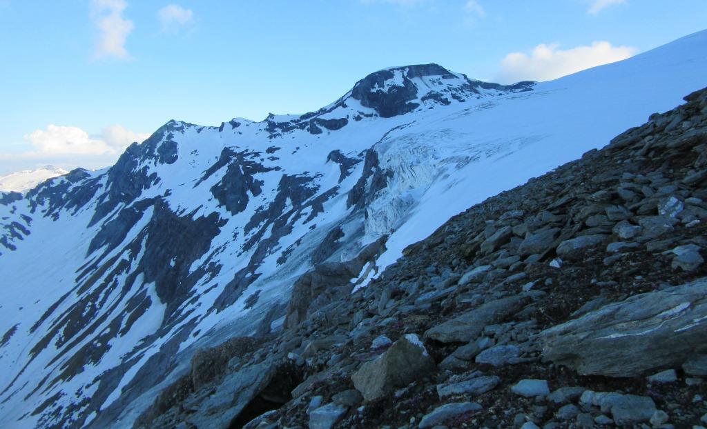 Ledenik Hofmannkees in Kleineklockner (pristop poteka po izrazitem snežišču)