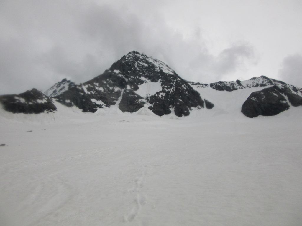 Potem je bilo treba zaradi ožine prejezditi škrbino in že smo bili v lažjem svetu. Sam sestop je bil lažji, kot pred dvema letoma, ker je povsod na grebenu še sneg. Zato ni nobenega plezanja po skalnih ploščah. Dejansko gre le za razmeroma strm spust po snežiščih na ledeniku Kleineglocknerkees. Na koncu sestopa s Kelineglocknerja, se mi je oddahnilo da nevihte še vedno ni. Me je pa na poti čez ledenik Hoffmankees do koče Erherzog-Johann Hütte zajela megla. Na srečo sem uspešno sledil gazi, ki me je pripeljala do koče. GPS-a pa tokrat nisem tovoril s seboj. Pa vidim da bi ga moral nositi na vsaki taki turi, saj nikoli ne veš kdaj te lahko zajame megla.