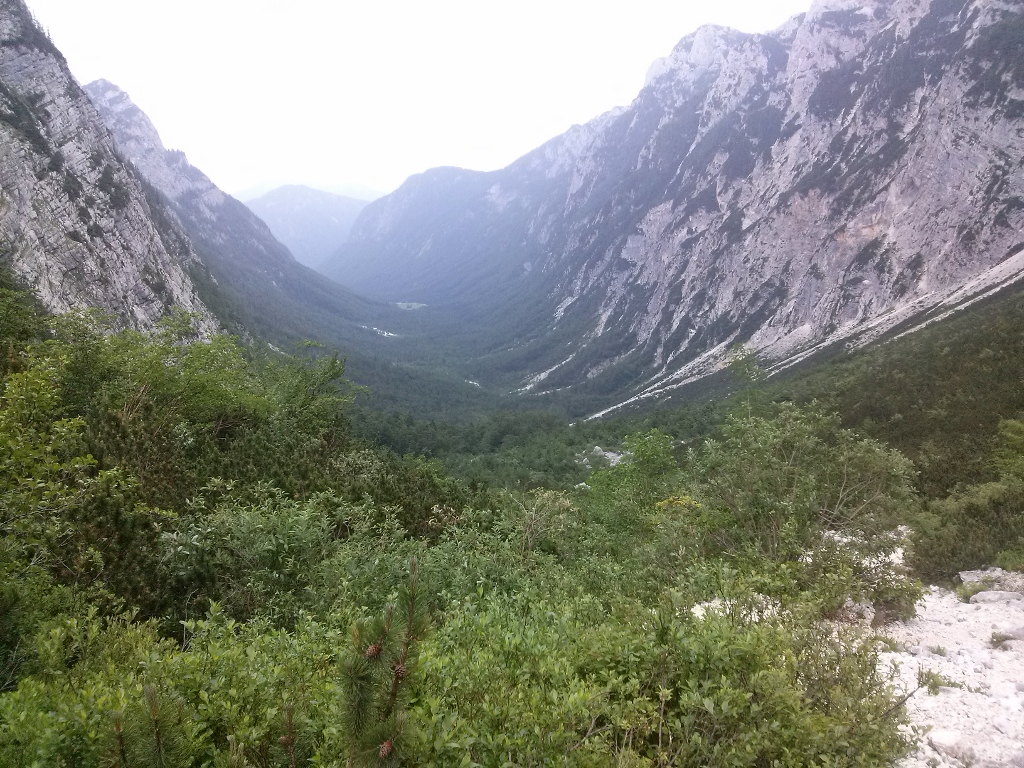 Prvič sem zahodil šele pod Kurico. Tu mi ni po pričakovanju ni šlo najbolje, saj že dalj časa ne treniram teka v zelo strm klanec. Medtem se je vreme skokovito slabšalo. Lahna veterna sapica je na Konjskem sedlu prešla mrzel vihar. Z naglim pridobivanjem višine se je vreme le še dodatno slabšalo. Triglav je bil zavit v oblake. Občasno pa je tudi zagrmelo. Tako slabega vremena res nisem pričakoval.