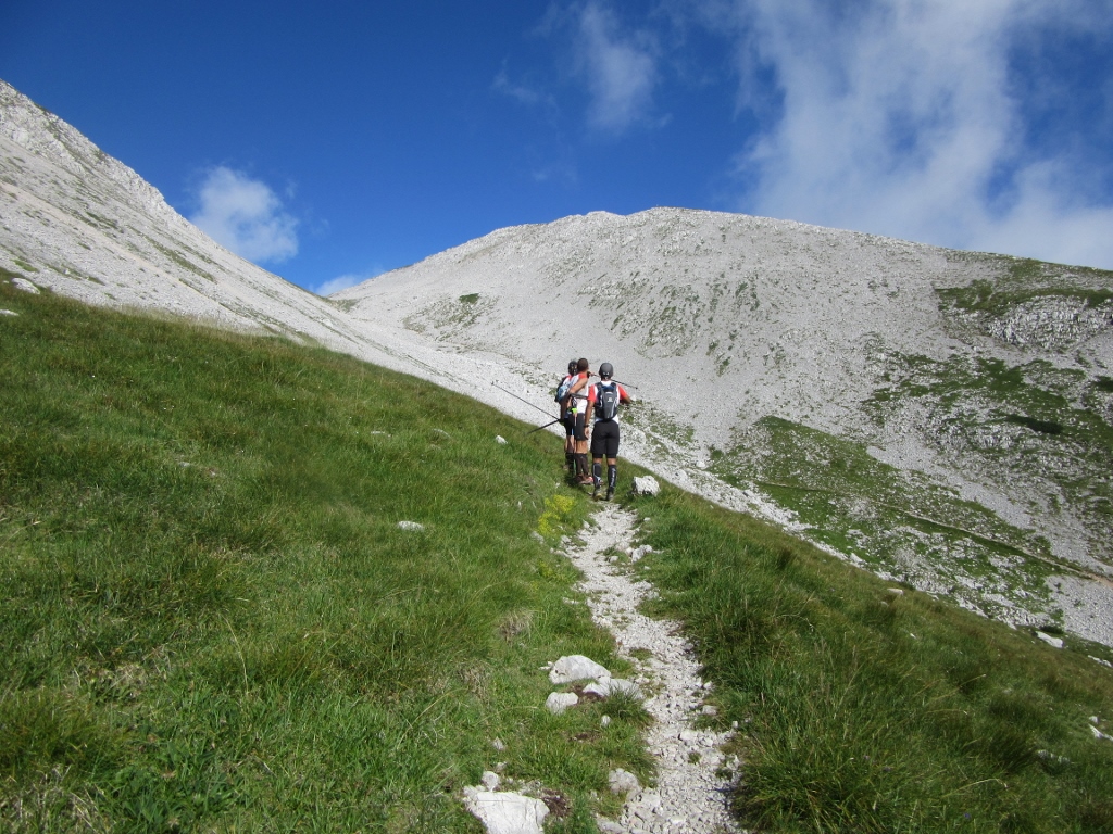 Ninotu, ki je bil najbolj spočit, sem prepustil diktiranje ritma. Pot od Stola dalje je čudovita in zelo tekaška. Skorajda celo smo pretekli in to z velikim užitkom. Klemen pa tudi zaenkrat ni kazal kančka slabosti. Prek Belščice in čudovite krnice Ride smo hitro napredovali proti Plavškemu rovtu. Ob klepetu je čas zelo hitro minil. Na Plavškem rovtu sta nam Uroš Feldin in Anita Brunec pripravila kraljevsko okrepčilo. Tu nas je počakala tudi ekipa RTV Slovenije, ki snema oddajo o Klemenu Trilerju in Slovenski planinski poti. Tu je bil najdaljši postanek na poti (ca. 15 minut), večinoma smo se ustavili še za manj, saj enostavno ni časa za postanke. Planirana etapa je tako dolga, da se enostavno ne izide, če se ne praktično ves čas. Poleg tega nas je počasi že priganjala noč.