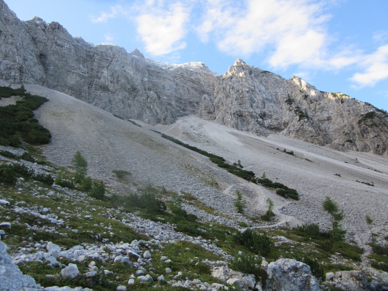 Do Koče pod Košuto še vedno vodi dobra cesta, ki nas pripelje udobno visoko. Od tod pa je le pol ure hoje čez melišča do vstopa v ferato. Na melišču se pot rahlo zgublja. Zato je v primeru megle tu orientacija nekoliko bolj zahtevna.