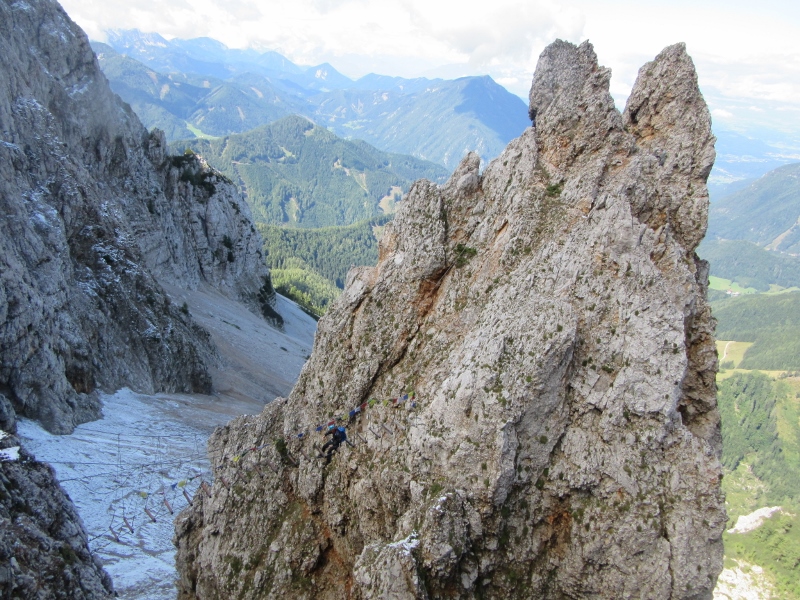 Po ferati na Cjajnik sem že šel pred petimi leti. To je bila moja prva športna ferata sploh in takrat me je kar pošteno namučila. Tek sem v zadnjem času skorajda povsem opustil in zamenjal za vse druge mogoče športe: od borilne veščine aikida, prek plavanja, pa vse do padalstva. Med drugim pa tudi veliko plezam na naravnih in umetnih stenah. Zato me za potrebno moč v rokah tokrat v ferati ni skrbelo. Moram reči da bi to spremembo moral narediti že prej in želim si poskusiti še kaj. Predlogi?