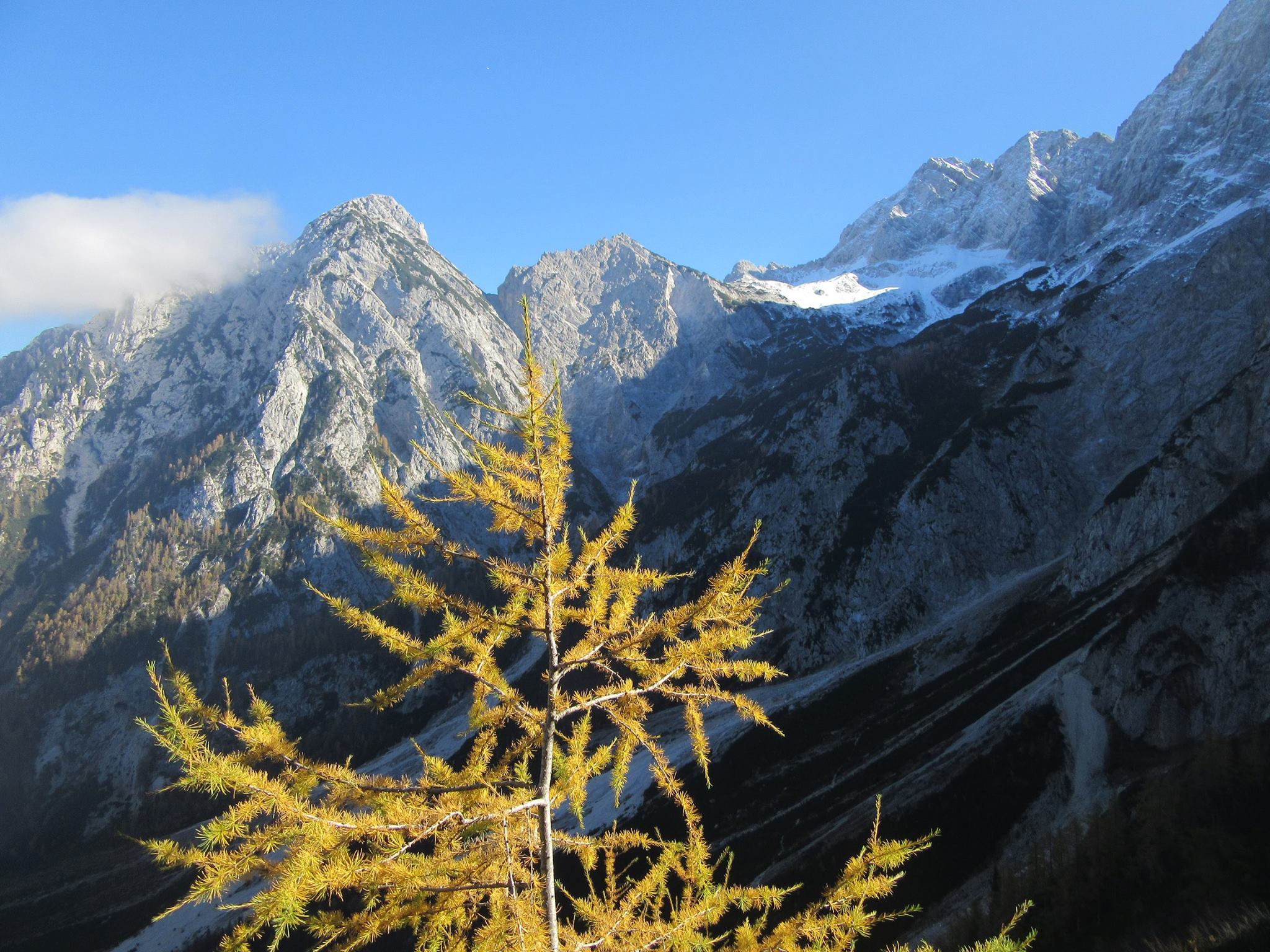 Za regeneracijo dan po maratonu sem se opravil na kratek sprehod na Jezersko. Na Spodnje ravni sem se vzpel po ferati “Češka koča”. V Ravenski Kočni, v senci Grintovcev, ni več jeseni. Je že zima, saj je že odpadlo vso jesensko listje. Hribi pa so že pobeljen s snegom.