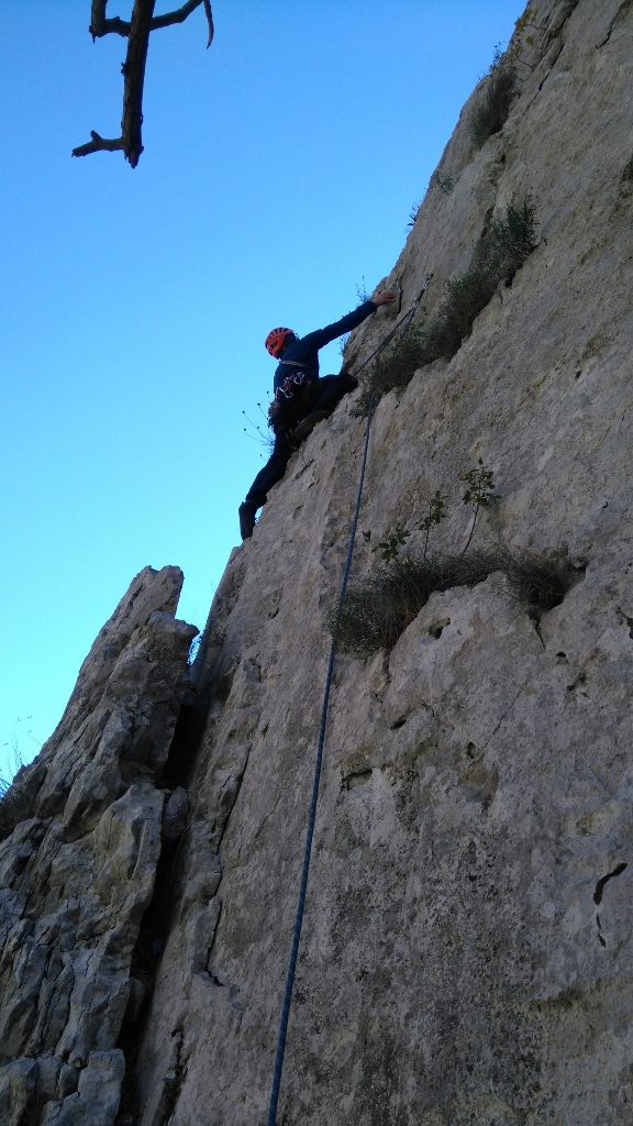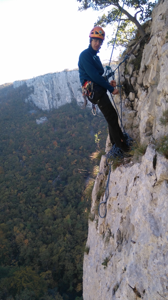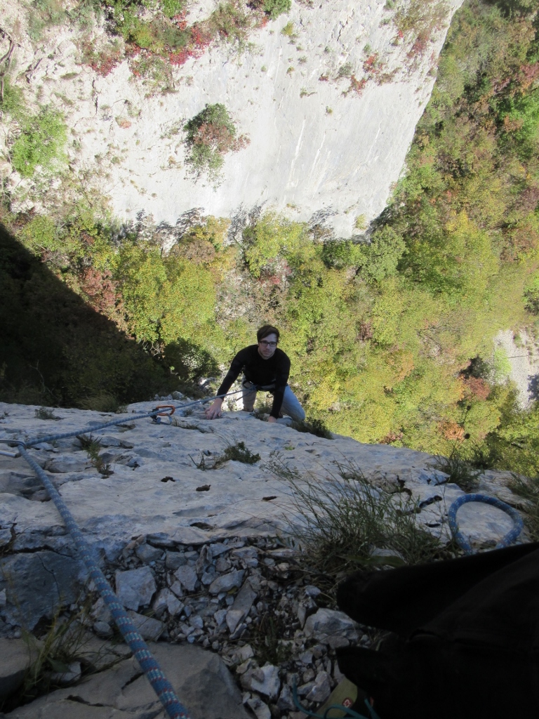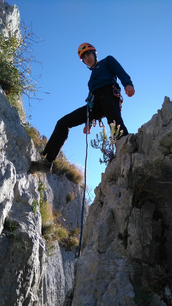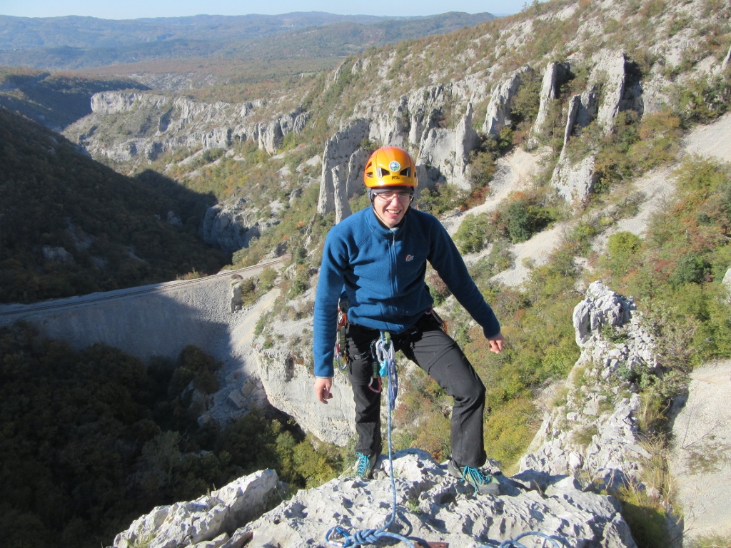 Tokrat sva se v Velo drago odpravila z bratom. Vreme je bilo sicer kristalno jasno, a pihala je precej močna burja. Verjetno je prav to odvrnilo večino plezalcev in sva bila v kanjonu skorajda sama.