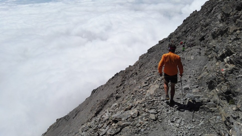 Ta odsek se zaključi pri koči Cà d’Asti na višini 2854 m, torej le za spoznanje nižje od našega Triglava. Tu je bila še zadnja okrepčevalnica pred naskokom na vrh. Vršnih 700 višincev proge poteka po skalnatem terenu. Vendar je proga še vedno veliko lepša kot tista na Grintovec. Večinoma se teče po ploščatih kamnih, ki spominjajo na stopnice. Zato je pot zelo prijetna za tek oz. hojo. Pot prav nikjer ni tehnično zahtevna. Vendar me je na žalost že kmalu odrezalo. Enostavno nisem več zmogel nazaj dvigniti ritma. Zato sem do vrha izgubil kakšnih 10 mest.