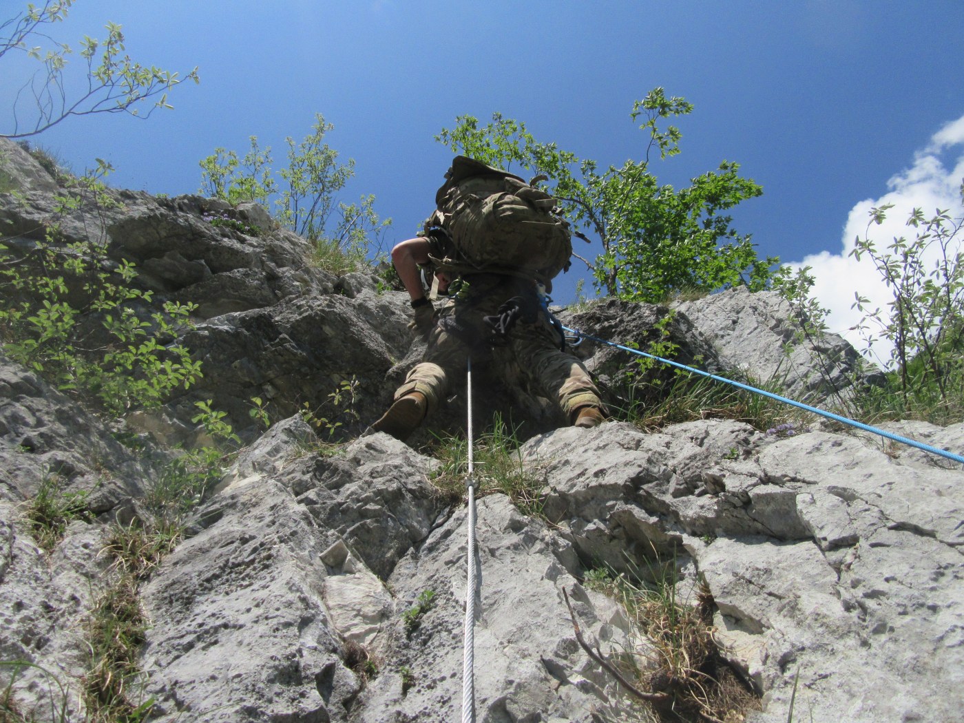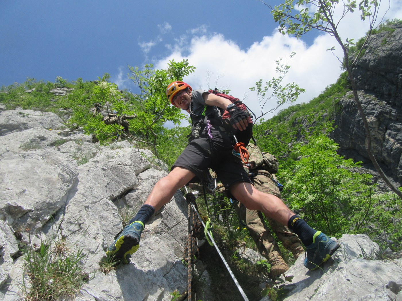Imel sem to smolo, da se je ravno v času mojega obiska po ferati vzpenjalo vsaj ducat Ameriških vojakov. Že od daleč se je videlo, da nimajo pojma kaj delajo. Baje so bili vsi prvič v skali. Ves čas vzpon me je bombardiralo sproženo kamenje. Brez čelade danes zagotovo ne bi ostal živ. Poleg tega so bili vojaki neznansko počasni. Prav nič me več ne čudi, da so izgubilo vojno v Iraku, če niso sposobni splezati niti ene same ferate čisto povprečne težavnosti.