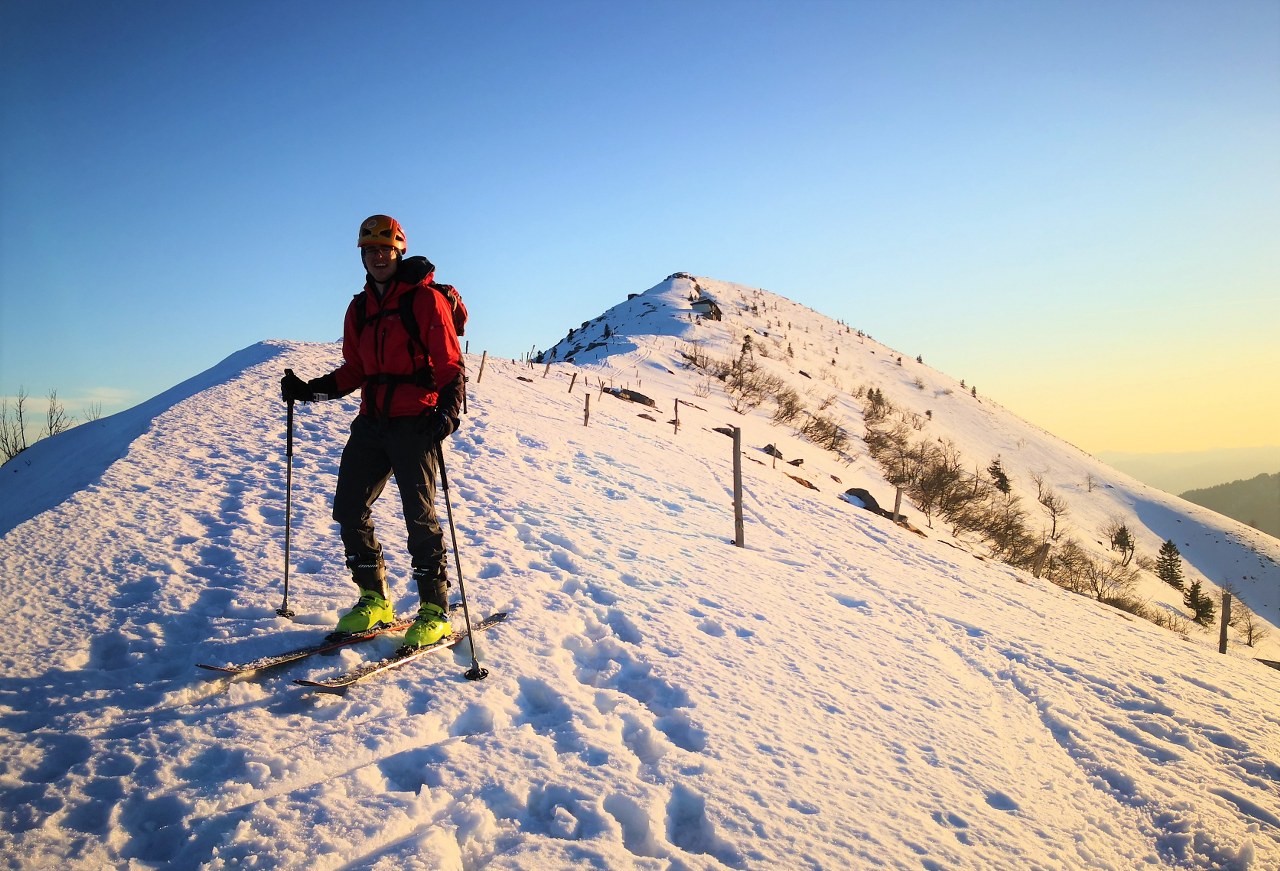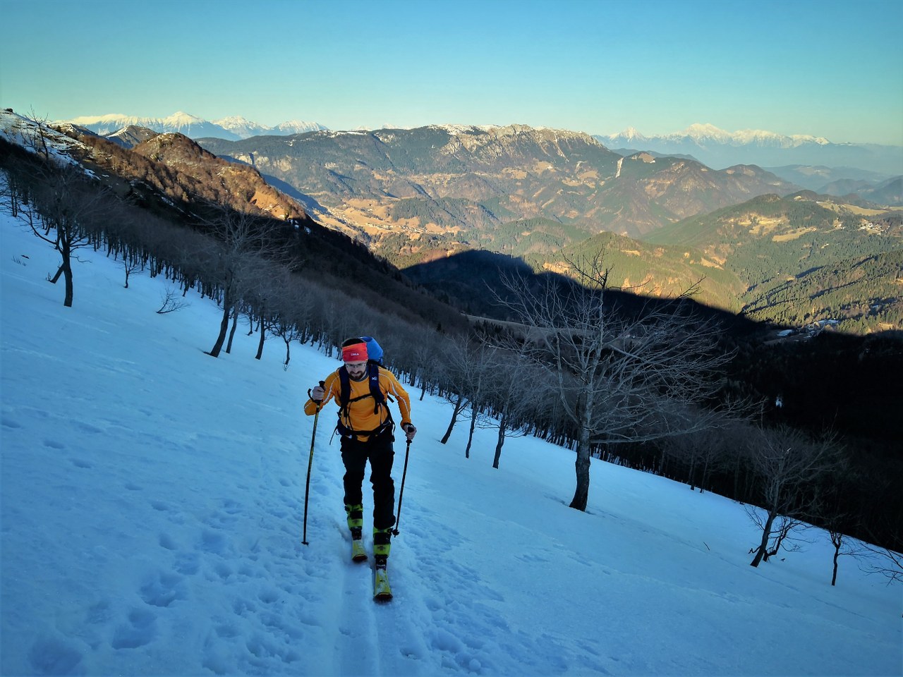 V tem (za februar) skorajda rekordno toplem vremenu je težko verjeti, da bi v sredogorju lahko še našli spodobno turno smuko. Vendar s prijateljem sva jo – na Poreznu. Samo kot zanimivost, lani v istem obdobju je bilo toliko snega, da si v visokogorje nisem niti upal iti.