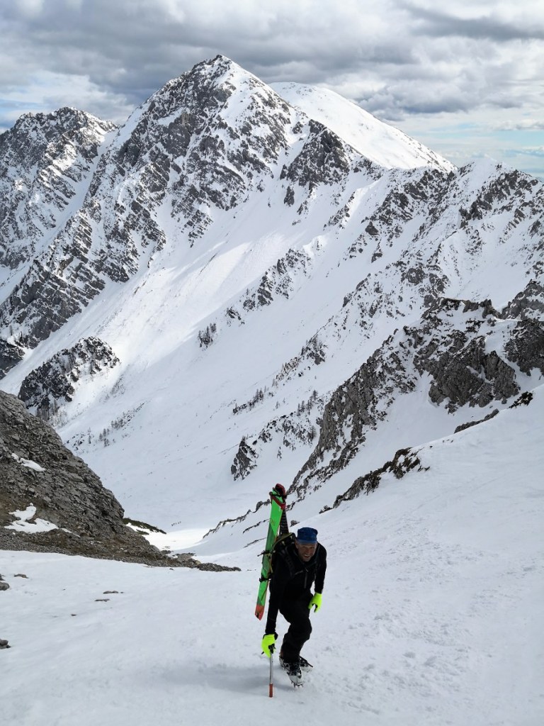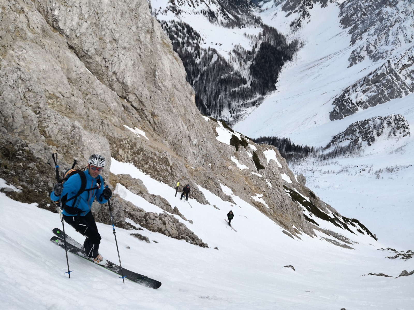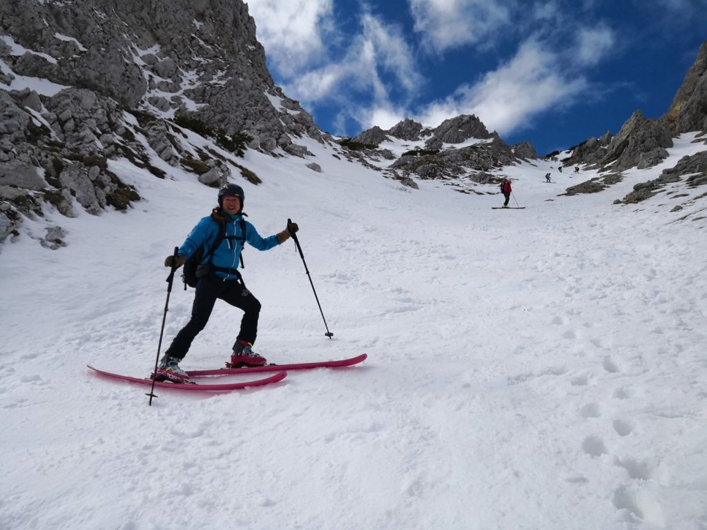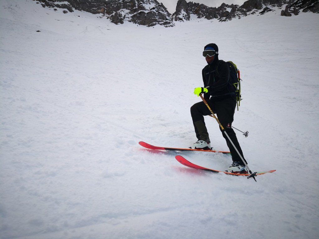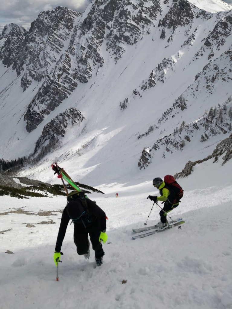 Smučala sva po smeri pristopa. Vršnih 50 višincev sva abručala, ker je bilo ledeno in strmo. Potem pa je sneg postal vse mehkejši. Smuka ni bila slaba. Nisva pa tudi bila deležna kakšnih hudih smučarskih užitkov. Pomembno nama je bilo, da sva se prismučala skorajda nazaj do avta. Za pešce priporočam uporabo derezic, za hojo po poledeneli cesti.