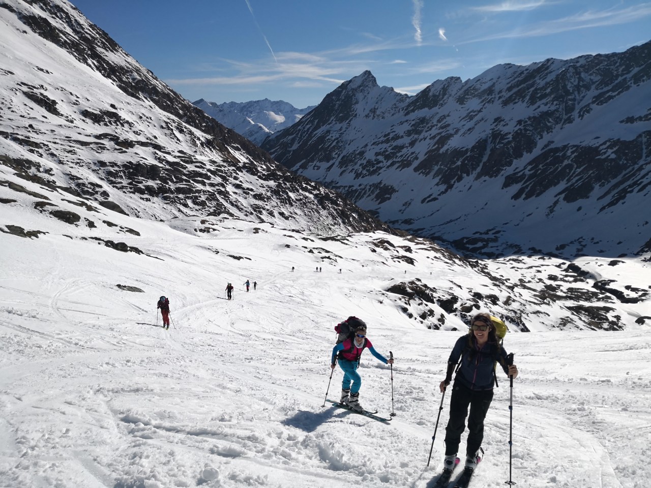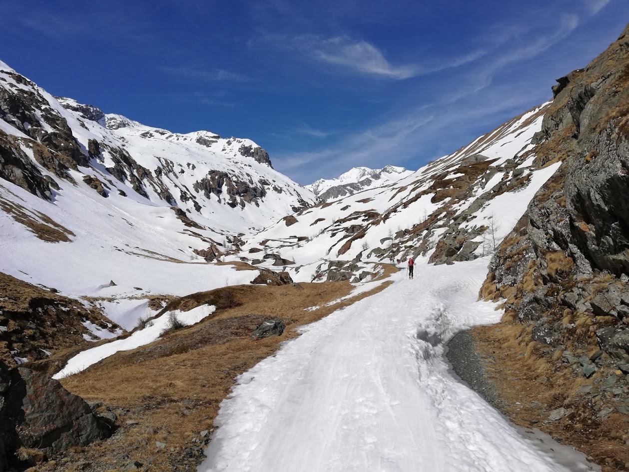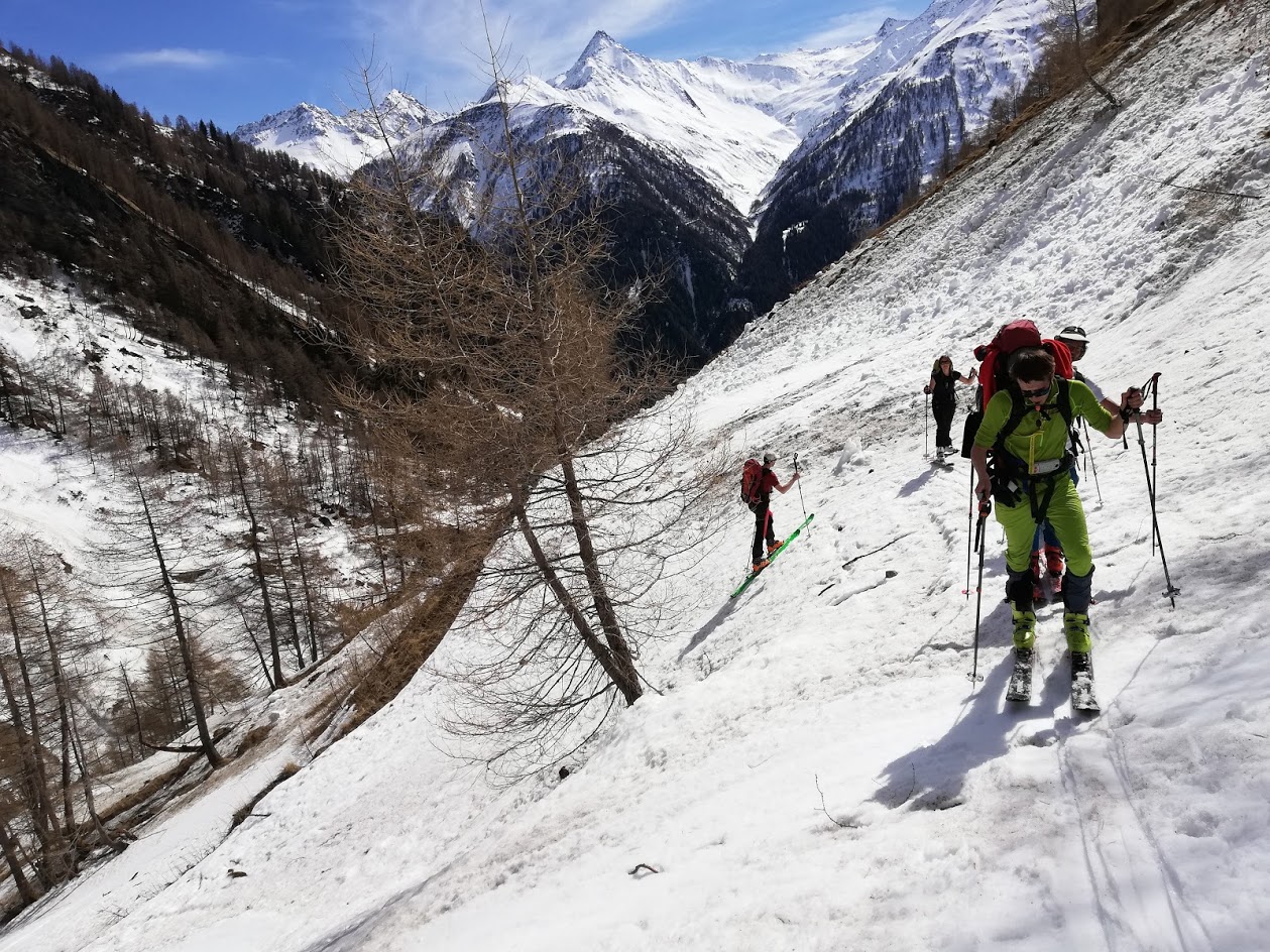 V dolino smo odsmučali po zahodni strani ledenika Rainerkees – v dolino potoka Dorferbach. Sneg je bil za smučanje odličen – srenjec. Skozi dolino Dorferbacha se je bilo nato potrebno kakšen kilometer na rahlo poganjati po ravnini. Na običajno pot smo se vrnili pri koče Johannishütte. Od tu dalje do avta ni bilo več dobre smučarije. Smo se (pa z izjemo treh krajših mest) pripeljali na smučeh do avta.