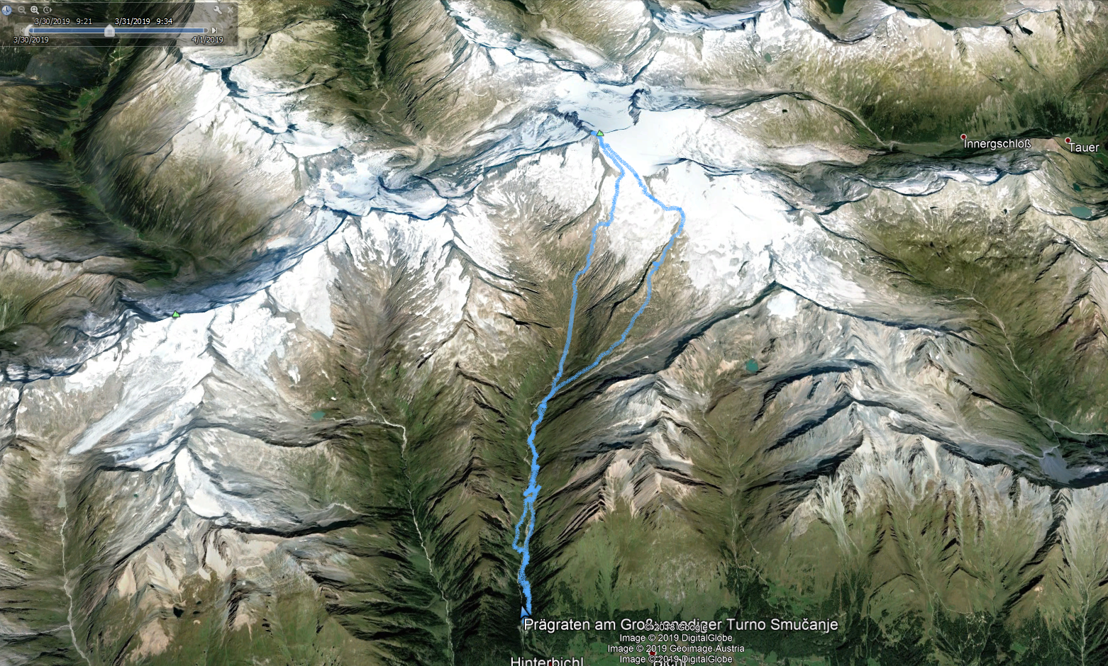 Grossvenediger (3666 m) je četrta najvišja gora v Avstriji. Kljub temu, pa zaradi razmeroma položnih ledenikov, ki jo prekrivajo, sodi med lažje dostopne tritisočake. Zato je to zelo zaželen turno-smučarski vrh. Z doline na vrh je potrebno premagati kar 2200 višinskih metrov. Lani poleti smo to turo izvedli v enem dnevu. Tokrat pa smo se odločili za dvodnevni vzpon.