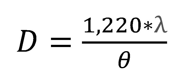 Kjer je je D potreben premer teleskopovega zrcala ali leče v metrih,