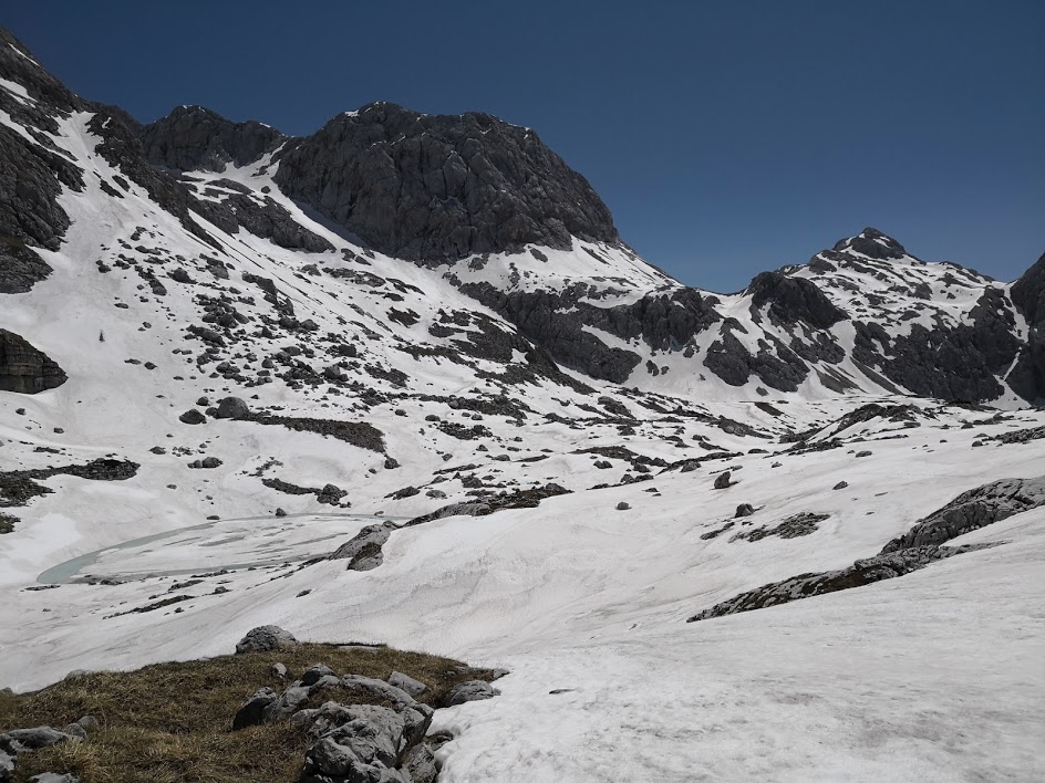 Sneg se začne 15 min hoje pod Jezerom v Ledvicah. Ledvica je še na pol zaledenela, med tem ko so vsa preostala jezera še povsem pod snegom. Viden sta smaragdna obrisa Zelenega in Rjavega jezera. Najvišje Triglavsko jezero – Jezero pod Vršacem – pa je še povsem pod snegom. Po Dolini Triglavskih jezer sem se vzpel do Zasavske koče na Prehodavcih. Nato pa sem se po snegu posmučal nazaj do Dvojnega jezera. Od tu pa sem odtekel proti Bogatinu in Komni. Po tej poti nisem hodil že vrsto let. Zato mi je bilo to še v poseben užitek. Na koncu pa me je čakal še sestop po mulatjeri do Savice. Nabralo se je 34 km in 1800 višincev.