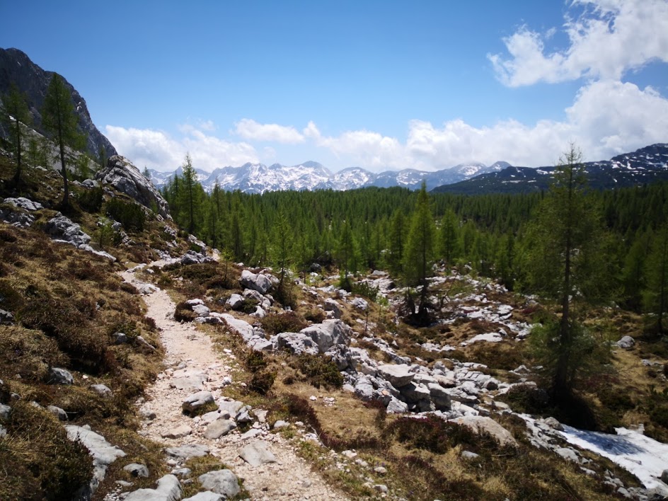 Za izhodišče sem izbral Kočo pri izviru Savice. Parkirnine ob osmih zjutraj še niso pobirali. Najprej sem se prek Komarče povzpel do Črnega jezera. Pot je odlično preživela zimo. Naprej proti Dvojnemu jezer pa je pot slabša. Vendar napor hitro poplača razgled na Dvojno jezero, ki je trenutno še kristalno čisto in polno vode, med tem ko je poleti dostikrat le mlakuža. V okolici jezera pa je polno avrikljev in žafranov, ki so povsod drugod že zdavnaj odcveteli.