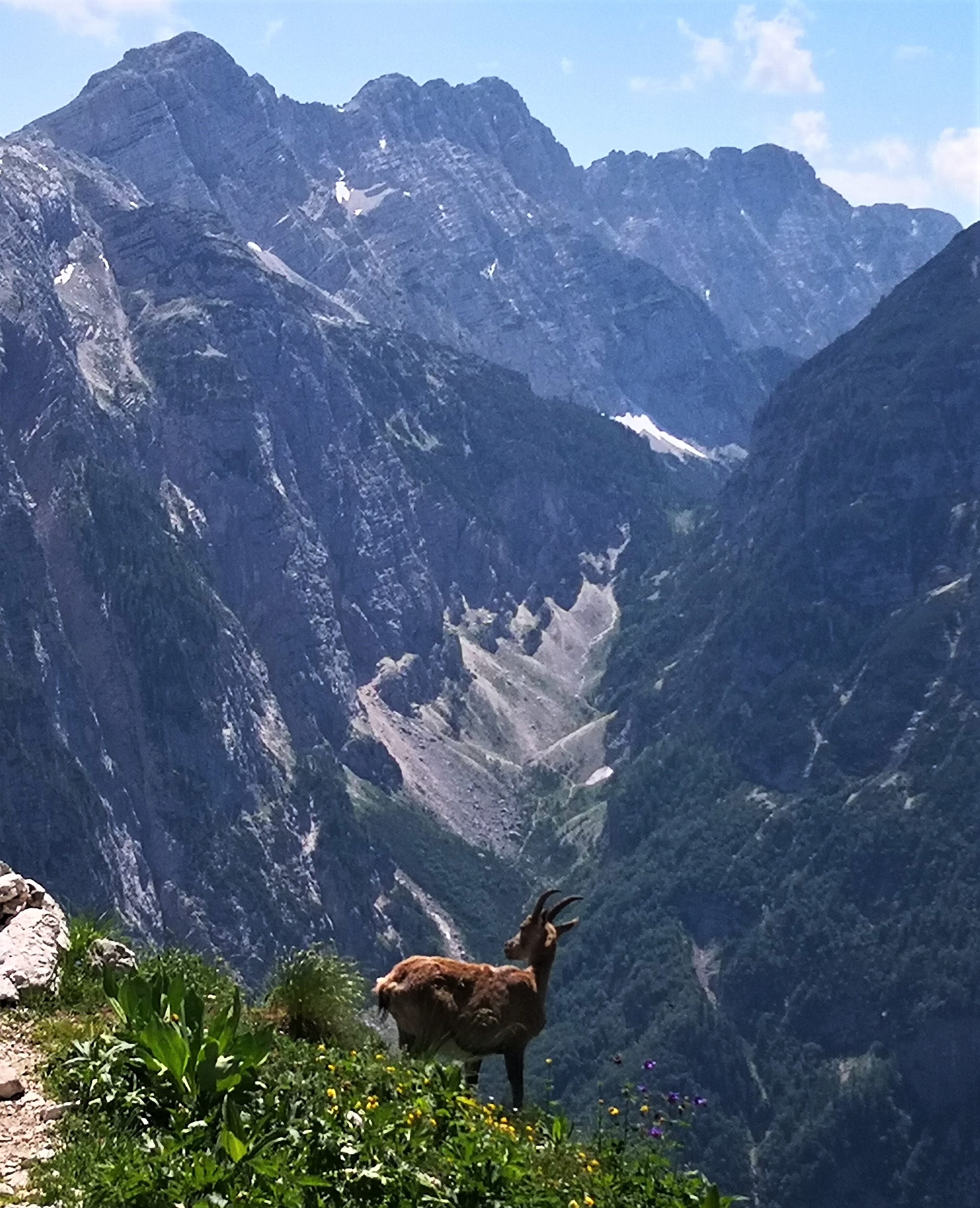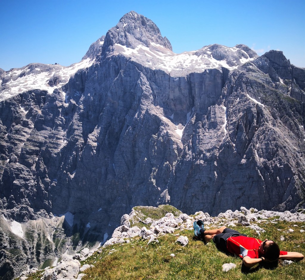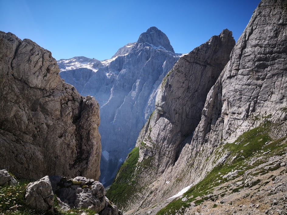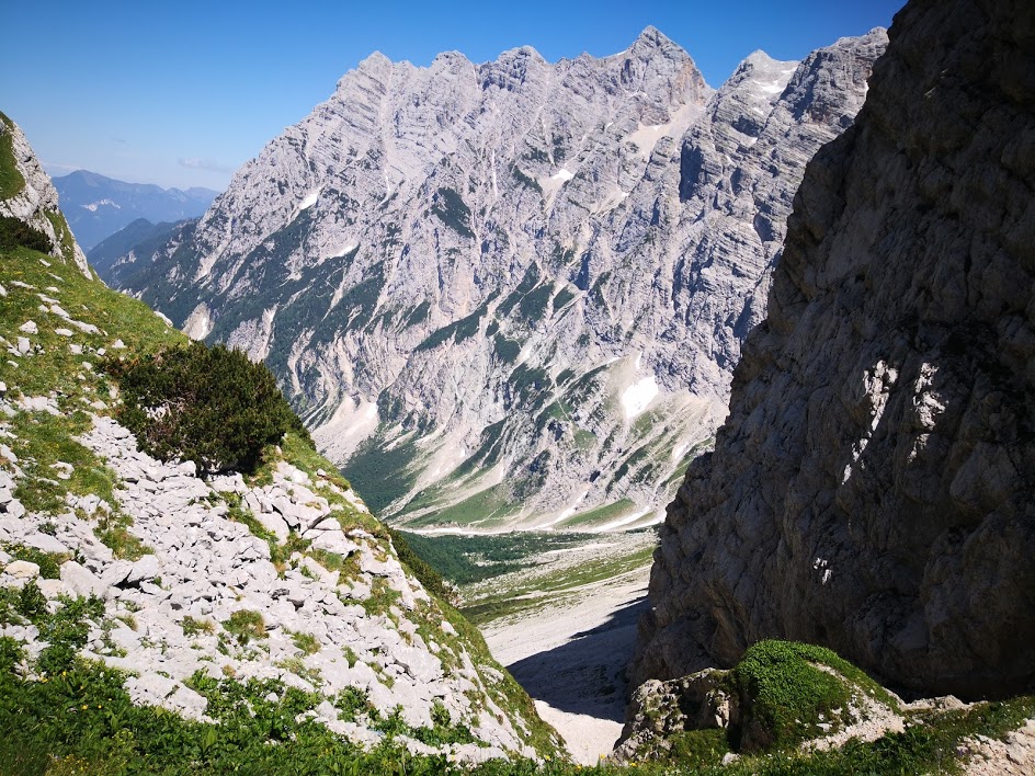 Začel sem na parkirišču v Vratih (celodnevna parkirnina znaša 3,5 €). Nato pa sem skozi Bukovlje dostopil do Sovatne. V spodnjem delu poti je bilo zelo vroče. Višje pa je bilo zelo prijetno hladno. Sam obožujem vročinske valove. Dokler temperature znatno ne presežejo 40 °C, mi je še vedno zelo v redu vreme. Na Dovških vratcih sem zavil proti Stenarju. Žal pa me je zaustavilo snežišče nad Stenarskimi vratci. Zato sem se namesto na Stenar povzpel na sosednji Križ. S Križa sem sestopil do Pogačnikovega doma. Nato pa sem nadaljeval na Bovški Gamsovec. S tod se je z vrha odprl čudovit razgled na Triglav. Sem užil dan in kar malo poležal v travi. Nato sem prek Luknje sestopil nazaj v Vrata. Razmišljal sem, da bi turo podaljšal še prek Triglava. Vendar nisem upal, ker nisem bil prepričan, da je pot čez Plemenice povsem kopna. Zato mi je po koncu ture ostalo še veliko časa, ki sem ga izkoristil za plezanje po novi ferate ob Jermanovem slapu. Več o tem pa v naslednjem blogu.