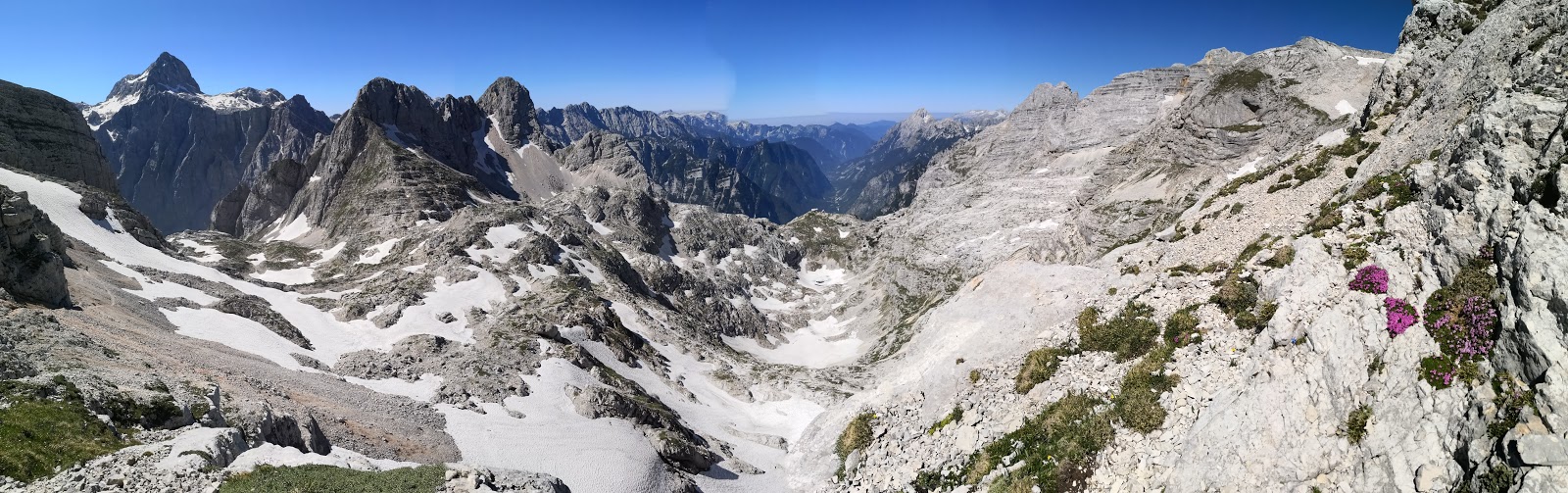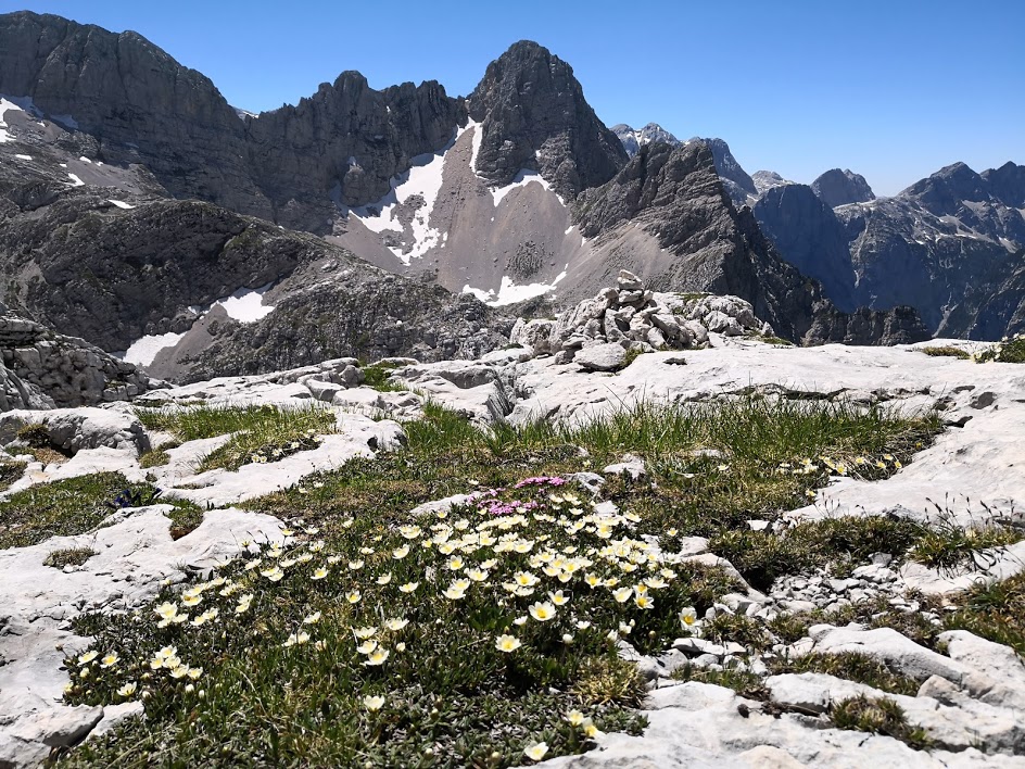 Kriški podi sodijo med najlepše predele Julijskih Alp. V take kraje je kar malo škoda hodit v slabem vremenu, saj smo zelo prikrajšani za razglede. Tokrat pa je bilo ob vročinskem valu vreme cel dan brez oblačka.