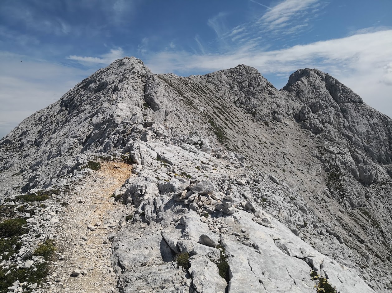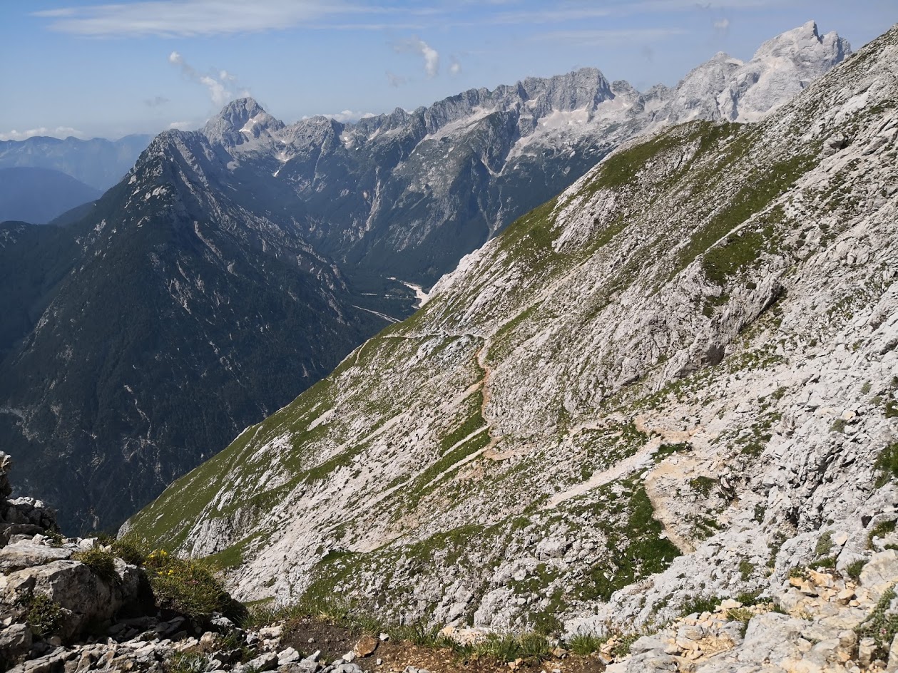 Grebenska pot z Bavškim Grintavcem in Jalovcem v ozadju