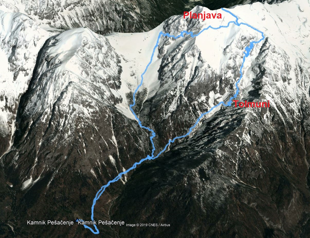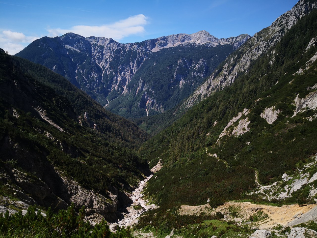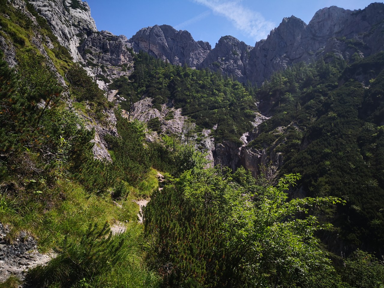 Od tolumunov sva nadaljevala po dolini navzgor. Po 20 min hoje pot pripelje iz gozda. Tu jo zapre prvi krajši skalni skok (I.). Nato se še eno uro nadaljuje čez melišča do zatrepa doline. Nazadnje pa pripelje v manjšo zagruščeno grapo. Naprej poti ni. Iz grape sva splezala naravnost oz. rahlo levo navzgor (I.). Nato pa sva kmalu spet naletela na možice, ki so naju čez skrotast teren pripeljali na Srebrno sedlo. Sestopila sva po označeni poti čez Planjavo na Kamniško sedlo. Ker pa sva bila že pozna (kopanje v tolmunih nama je vzelo veliko časa), sva se s sedla do Pastircev spustila kar po melišču. Zelo lepa krožna tura. Primerna za vroče poletno vreme.
