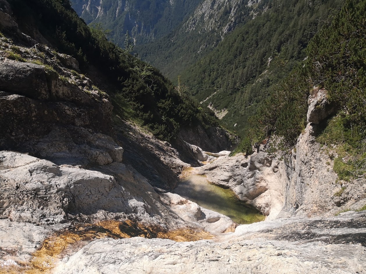 Poletje se počasi bliža h koncu. Zato sva izkoristila lepo vreme za še en obisk tolmunov v Repovem kotu. Vreme pa ni v hribe potegnilo samo naju, ampak kar “celo” Slovenijo. Na parkirišču na Jermanci sva zato kar s težavo našla prosto parkirano mesto. Vendar, ker sva kmalu zavila na malo znano pot skozi Repov kot, potem cel dan hoje nisva (z izjemo parih tujcev) nisva srečala nikogar. Po dobri uri hoje sva dosegla tolmune (podrobneje kako do njih se že pisal). Zame so pravi gorski biser brez primere. Voda, ki se je pretakala čez njih je imela samo 5 °C. To zato, ker so večji del dneva v senci. Šele popoldne v njih posije Sonce.