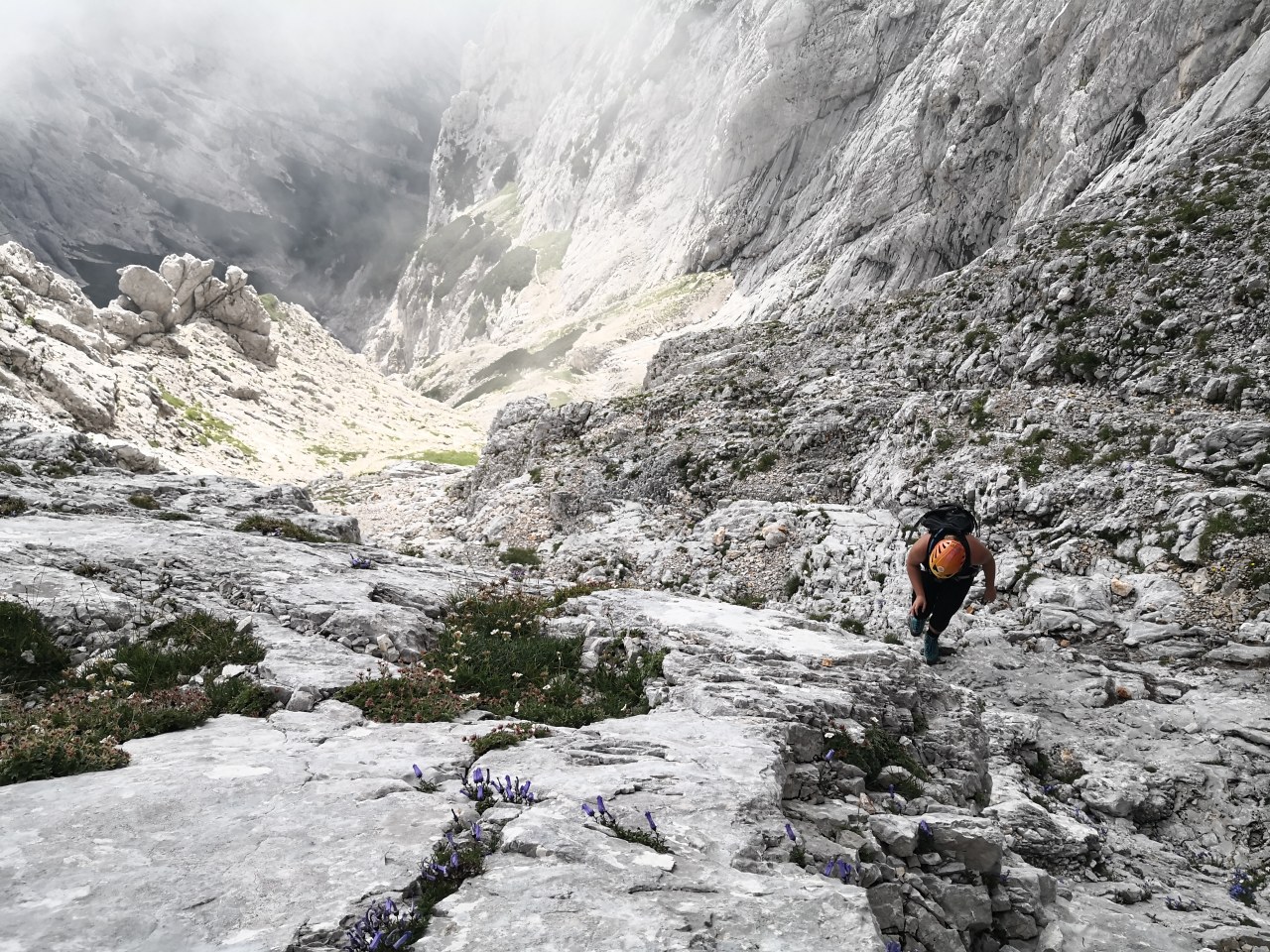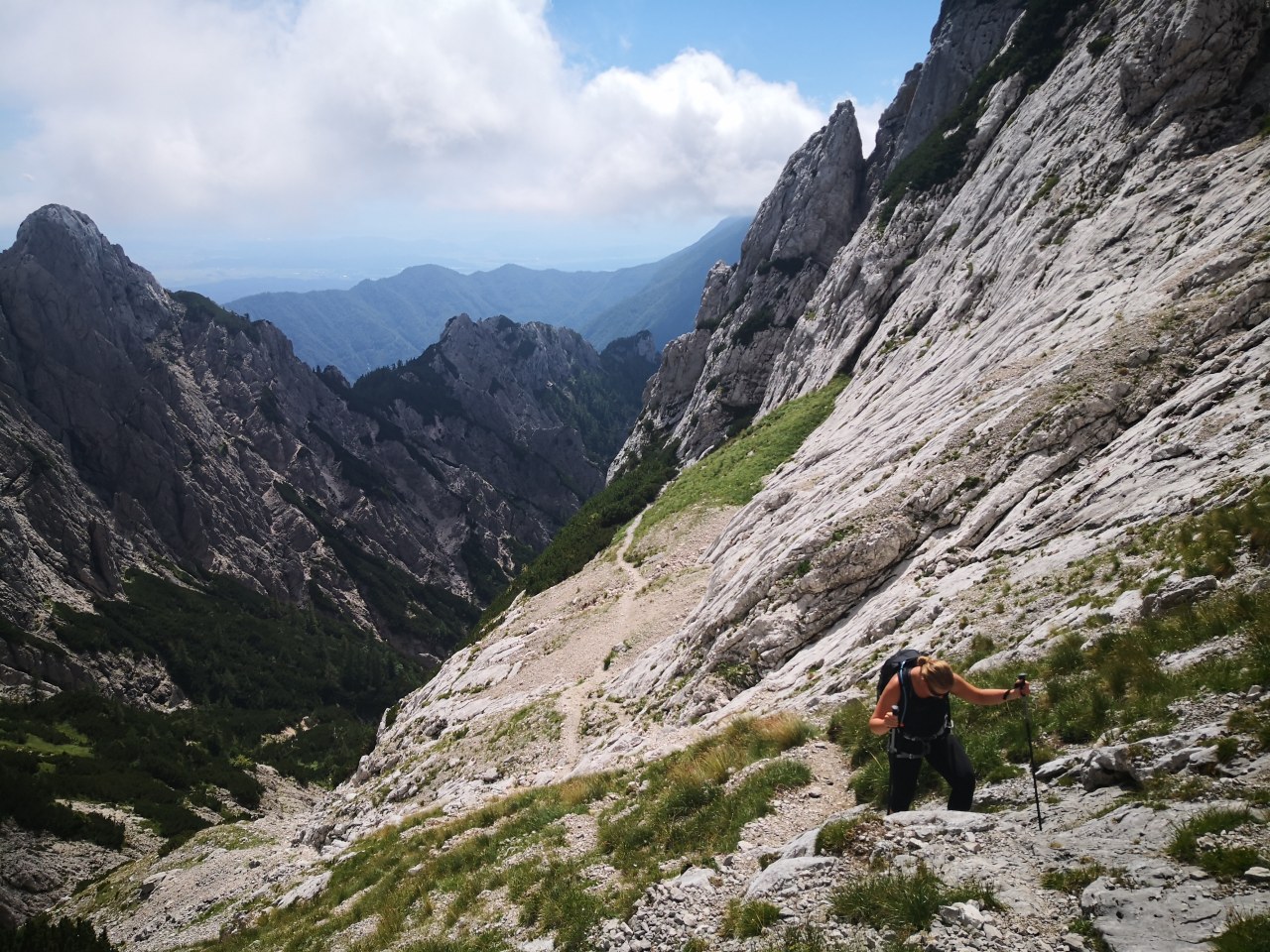 Lažje plezanje iz zatrepa Repovega kota do Srebrnega sedla