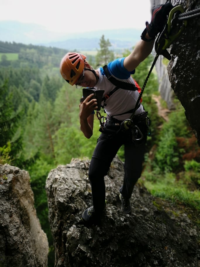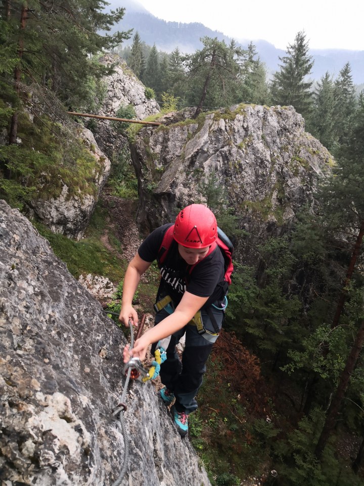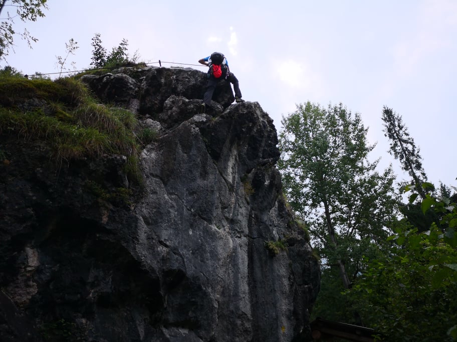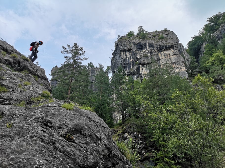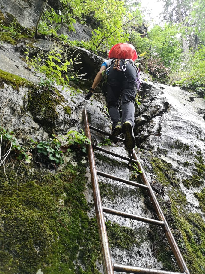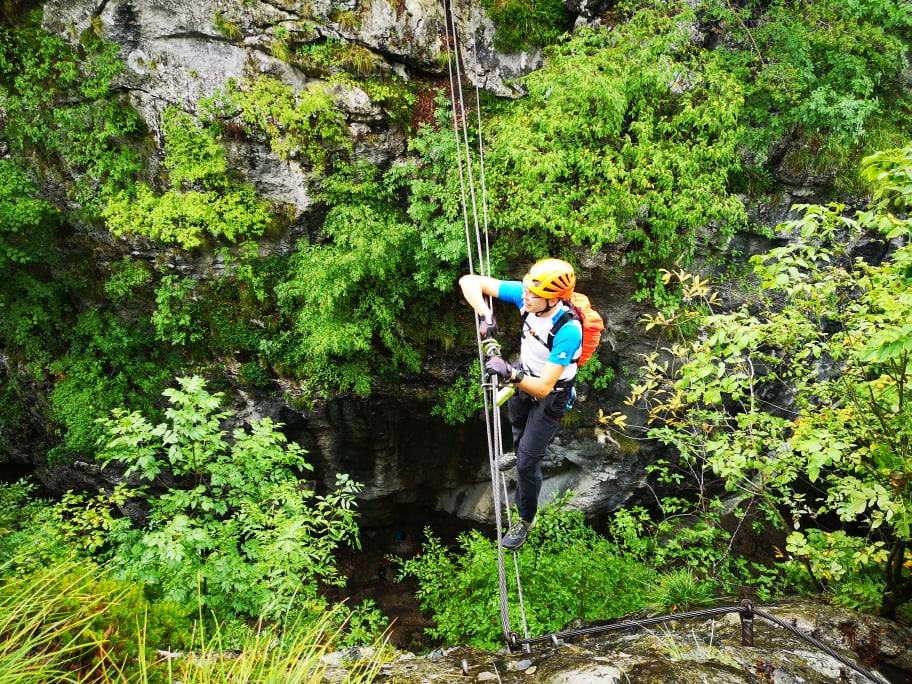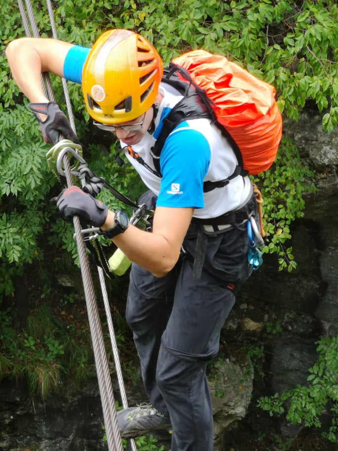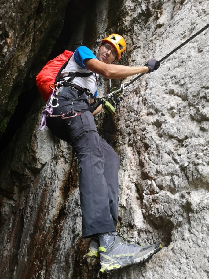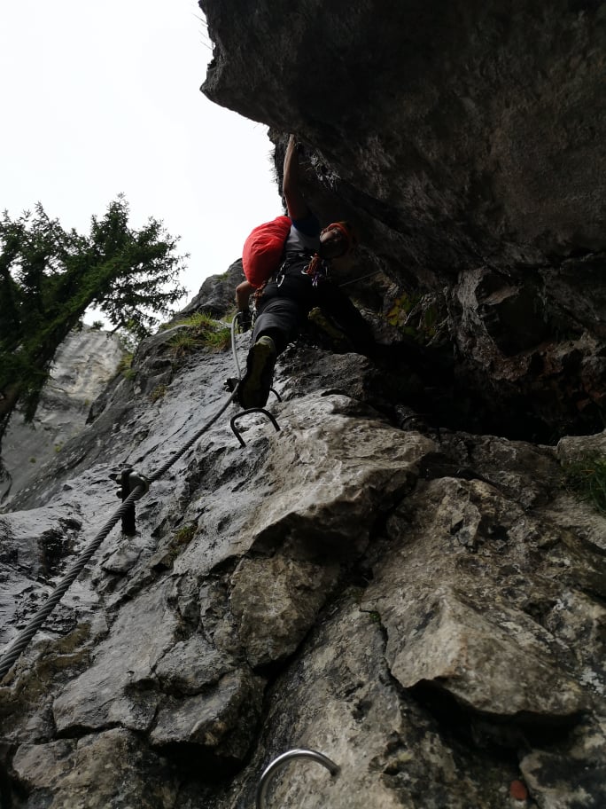 Večina ferat je lahkih (težavnost B/C). Nekaj pa je tudi težjih. Ker pa je bilo vreme deževno in zato skala mokra in predvsem zelo spolzka, je bila ves čas potrebna izdatna previdnost. V lažjih feratah je šlo. Skozi eno izmed jam pa poteka tudi zelo zahtevna ferata težavnosti D/E. V previsu mi je na mokri skali, spolzki kot led, nenadoma spodrsnilo. Na srečo sem se na tem mestu dodatno varoval s popkovino. V nasprotnem primeru bi obvisel na samovarovalnem kompletu.
