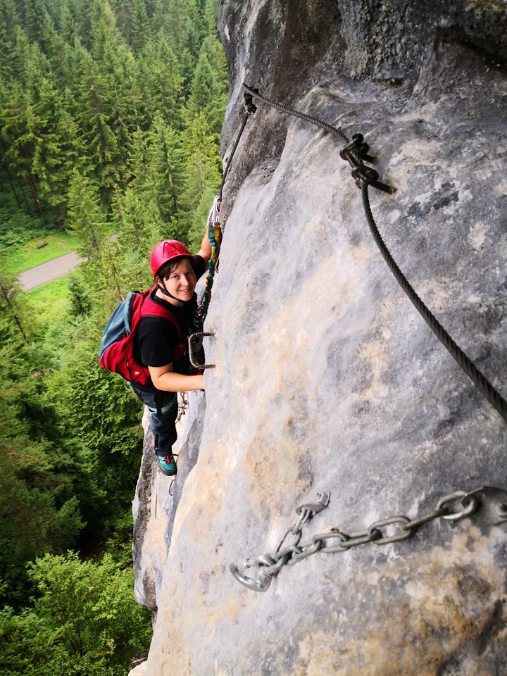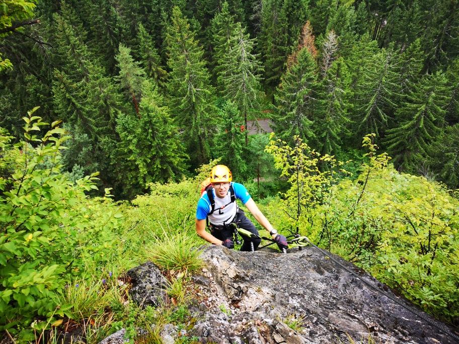 Prva ferata se začne samo 30 m stran od parkirišča. Ferate so resda kratke, vendar jih je najmanj 20 (podatek iz Bergsteigen.com). Težko je podati dober opis kako se jih lotiti, saj jih je toliko, da jih je težko združiti v en sam krog. Po štirih urah nepretrganega feratanja sva sklenila, da sva preplezala skorajda vse. Imela sva srečo, da sva samo po eni ferati šla dvakrat, ostale sva plezala samo enkrat. Na feratah se najde vrtoglave viseče mostove, zipline, lestev, večje in manjše jame ter neštevno skob in klinov. Skratka, pravi adrenalinski park v naravi.