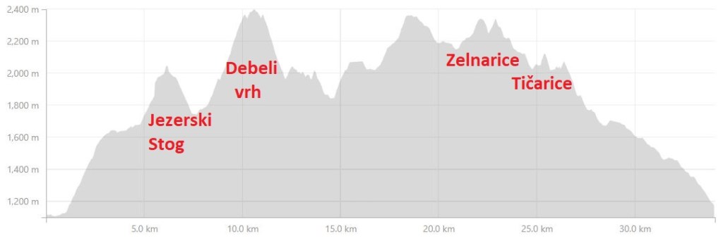 Začela sva na planini Blato. Skozi grapo potoka Bušnica sva se najprej povzpela na pl. Krstenico. Poti večinoma sploh ni. Treba se je držati grape do vrha, kjer se teren zravna. Nadaljevala sva na Jezerski Stog (2039 m). Nato sva se spustila do pl. Jezerce in se prek Lazovškega prevala vzpela na Debeli vrh (2390 m). Gora je sestavljena iz predvrha in glavnega vrha. Vmes pa se je treba spustiti v škrbino (par metrov plezanja I. stopnje).