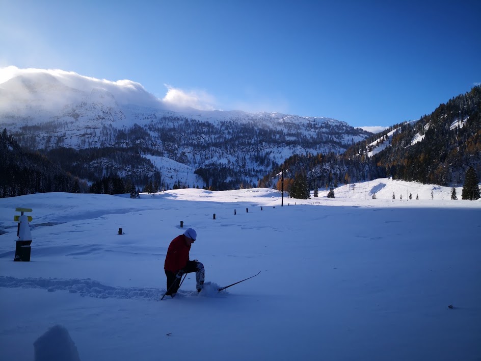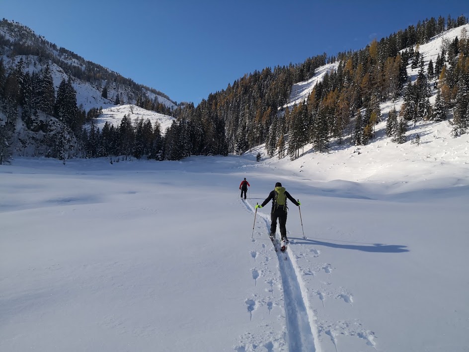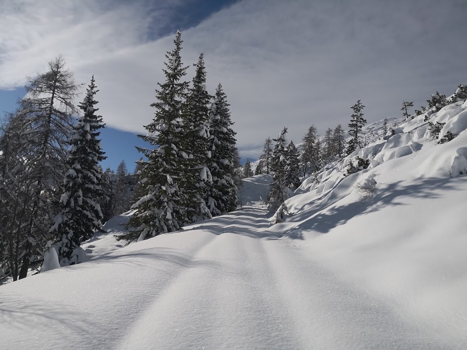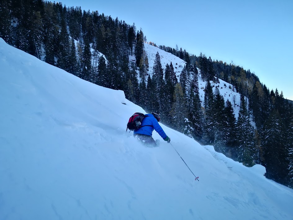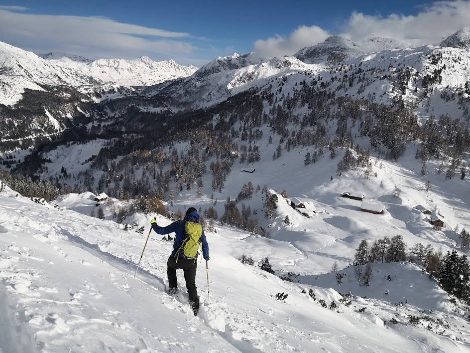 Ker je bil danes edini dan v celem tednu, z napovedanim lepim vremenom, smo se odpravili v hribe. Odločili smo se za goro Spirzinger, ki leži na severni strani prelaza Obertauern. Snega je v Avstriji trenutno res ogromno. Snežna meja se začne nekje na 800 m. Pobočja, ki ležijo nad 1000 m pa so že smučljiva. Ker smo bili prvi, smo celotno pot vlekli gaz. Novega snega je več kot meter in še s smučmi se je prediralo 30 cm. Cesto do koče Südwiener Hütte smo pregazili s skupnimi močmi. Vzpon na Spirzinger pa je bil še bolj naporen. Snega je bilo toliko, da smo napredovali izjemno počasi – za 150 višinskih metrov vzpona smo potrebovali kar eno uro. Najbolj se je prediralo na območju, kjer je bil sneg čez ruševje. Potem pa se je kolegu zlomila vez na smuči. Peš ni mogel sestopiti, saj se je prediralo do vratu. S pomočjo izolir traku mu je panacar uspelo zasilno pritrditi na smuči. Na srečo, saj v nasprotnem primeru bi bil povratek v dolino popolnoma nemogoč. Snega je bilo toliko, da se še smučati ni dalo – razen na bolj strmih pobočjih.