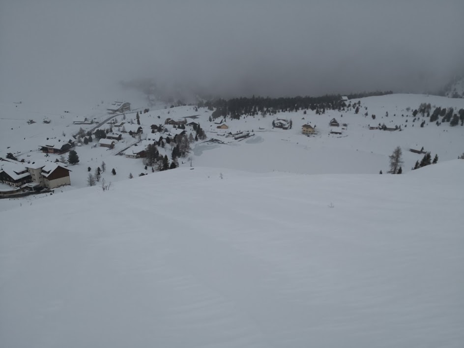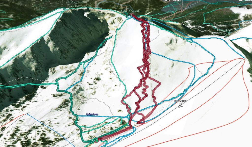 Falkert je 2308 m visoka gora v pogorju Nockberge. Na gori sem bil že poleti po zahtevni ferati. Tokrat pa smo se odpravili sem smučat zaradi visoke višine izhodišča (1870 m). Ideja ture je, da bi se povzpeli najprej na Falkert. Nato se spustili na drugo stran do koče Falkertschuthaus (1557 m). Od pa bi se povzpeli na goro Falkertköpfl (2197 m). Žal nam je izredno gosta megla preprečila ta načrte. Prvič se mi je zgodilo, da sem med smučanjem navzdol imel občutek, da sem sem se zaustavil in, da stojim pri miru. V resnici pa sem se še vedno peljal, dokler me o nasprotnem ni prepričal nenaden padec. Efekti teorije relativnosti v hribih. Skratka megla, ki ti popolnoma onemogoči vsakršno sposobnost orientacije. Sicer pa so bile snežne razmere dobre in smo se kar dobro nasmučali.