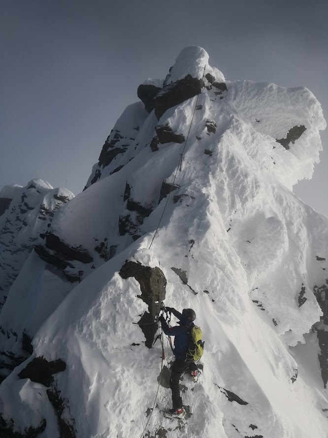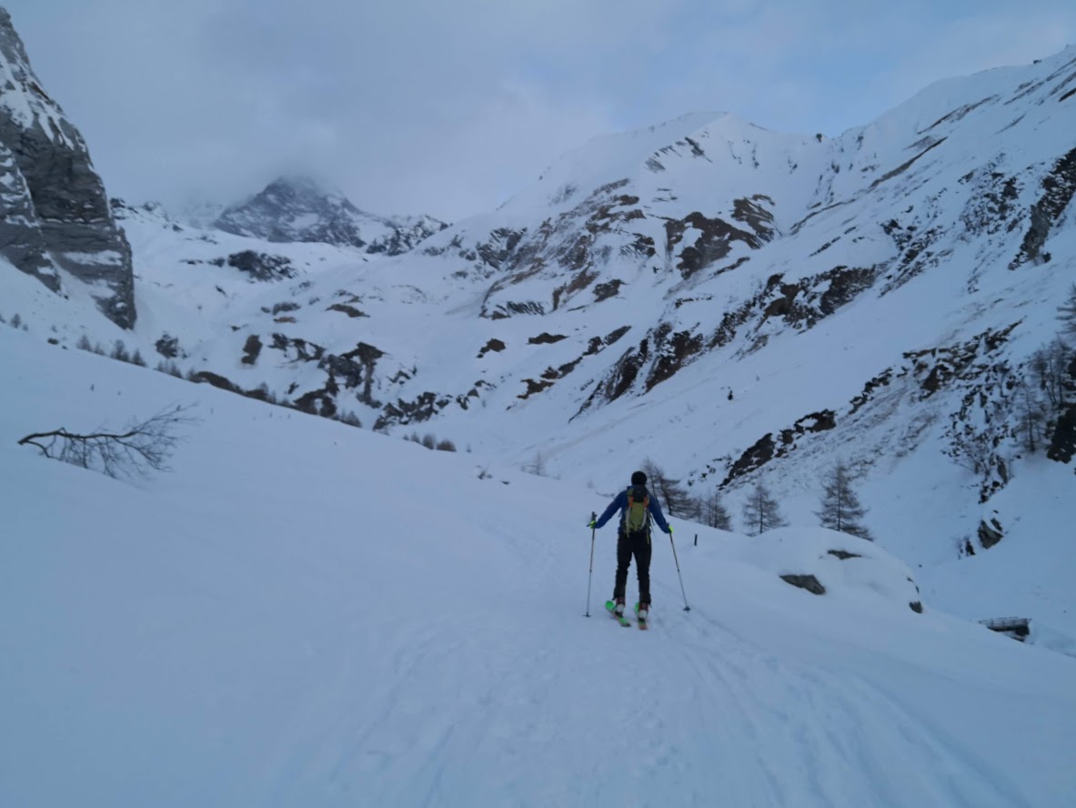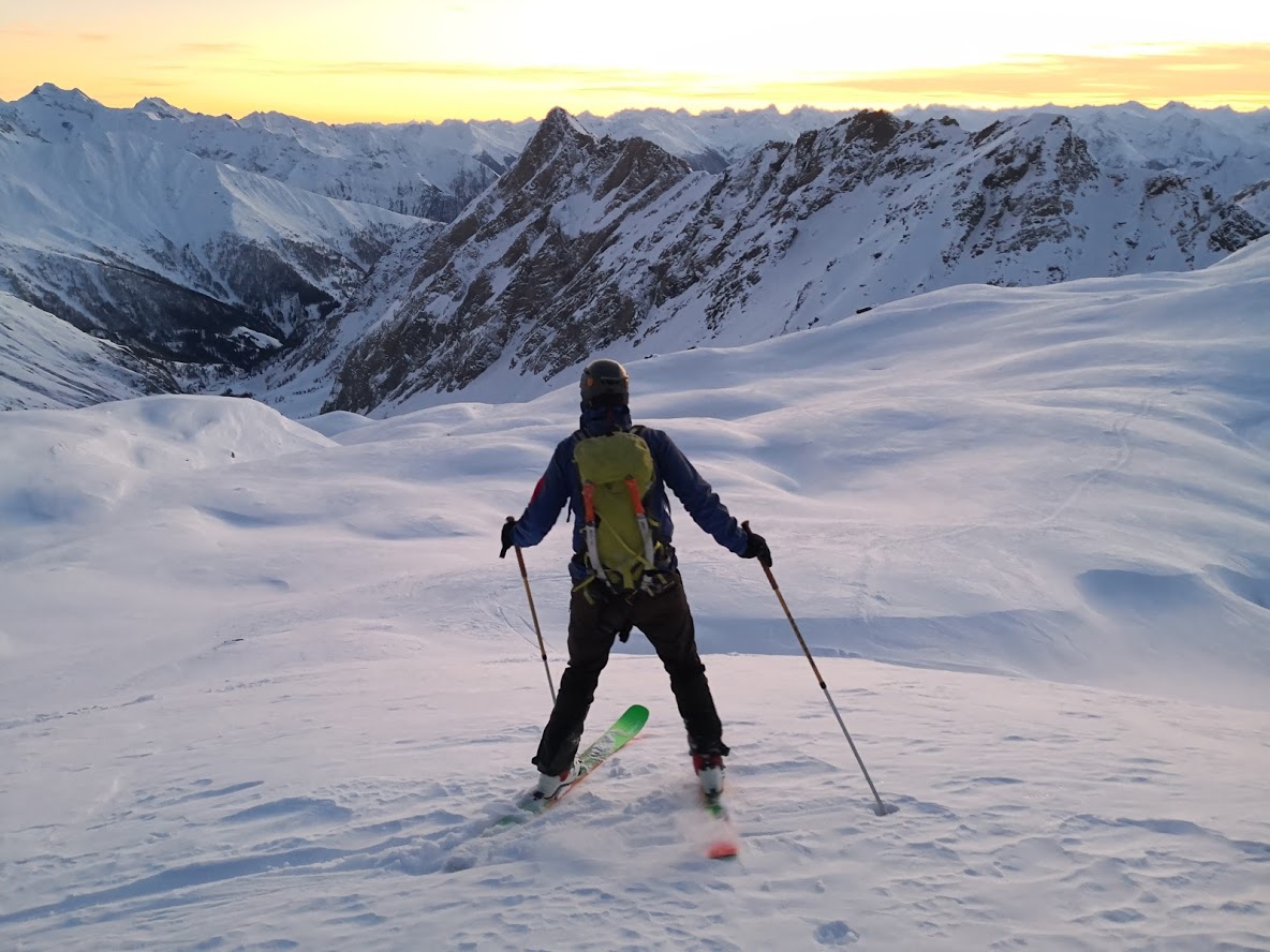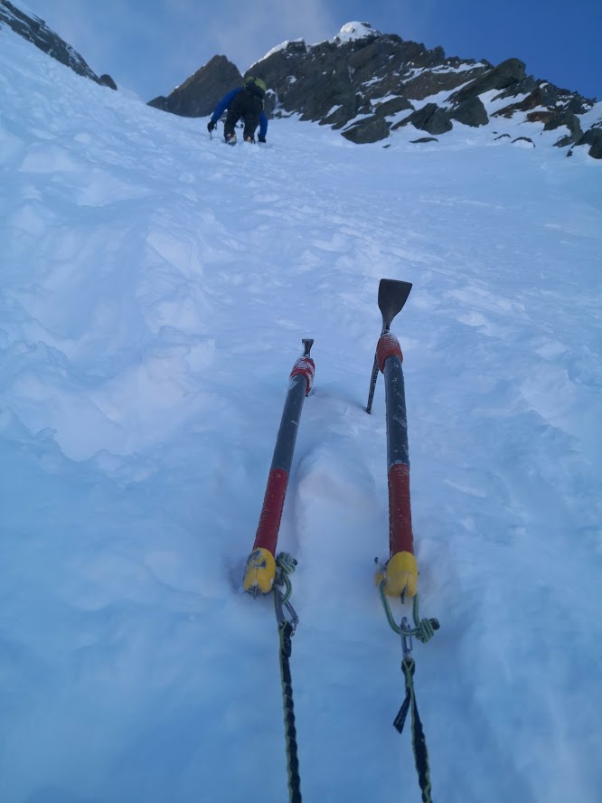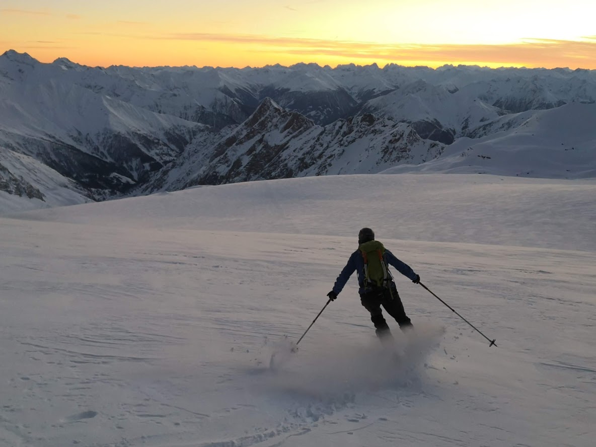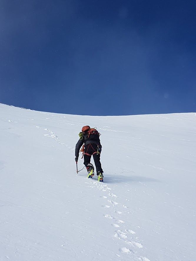 S turo sva začela iz parkirišča pri hotelu Locknerhaus ob precej pozni, 8. uri zjutraj. Snega je v tem predelu Alp precej več kot bolj na vzhodu. Snežna meja je na okoli 500 m. Smučljiva pa so vsa pobočja nad 1000 m. Tako je bilo že na izhodišču več kot en meter snega. Špura je bil precej dobra. Pa tudi če je ne bi bilo, bi šlo, saj je sneg predelan in se zelo malo predira. Do koče Locknerhutte cesto prekinja nekaj snežnih plazov. Nato ni več posebnosti. Z odločnim tempom sva hitro napredovala in v dveh urah in pol dosegla ledenik Kondnitzkees. Prečenje ledenika je čudovito doživetje: ena ura hoje brez enega samega ovinka. Nadaljevala sva čez zatrep ledenika do grebena, kjer sva se priključila markirani poti. Tu sva pustila smuči, se opremila v cepine in dereze; ter nadaljevala še 150 višincev do koče Erzherzog-Johann-Hütte (3454 m). Šlo je za kratek in razmeroma enostaven odsek poti. Vendar sva tu oba zelo čutila efekt višine. Poleg tega je postalo izredno hladno. Pri koči je bilo 10 stopinj pod lediščem. Zaradi vetra pa je bil občutek mraza okoli – 23 °C. Čez Kleineglocknerkees sva vstopila v žleb, ki pripelje na sedlo pod Kleineglocknerjem. Snežne razmere so bile super. Žleb je smučljiv. Greben je spihan – vse jeklene palice gledajo ven iz snega. Varovala sva se le na odseku iz škrbine do vrha Grossglocknerja (II). Na vrhu gore sva se zadržala manj kot minuto časa, saj sva ga dosegla šele ob drugi uri popoldne. Najin cilj je bil, da do začetka noči sestopiva vsaj do mesta, kjer sva pustila smuči. To nama je za las tudi uspelo. V čudoviti večni zarji sva presmučala ledenik, kjer so bile smučarske razmere super. Pod ledenikom pa malce manj (skorja, napihan sneg). Ampak smučarski užitki so bili drugotnega pomena na tej turi. Smuči so bile zgolj orodje, da čim hitreje zaključiva s turo. In to nama je uspelo v 9 urah in pol.
