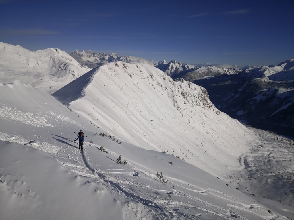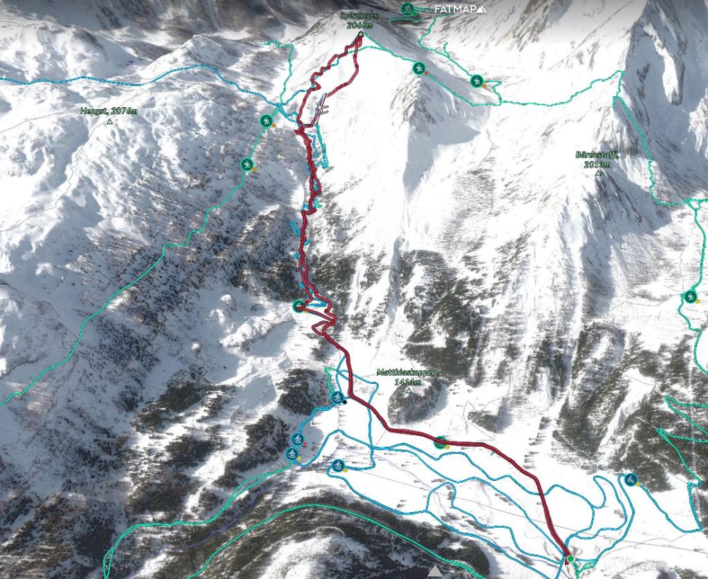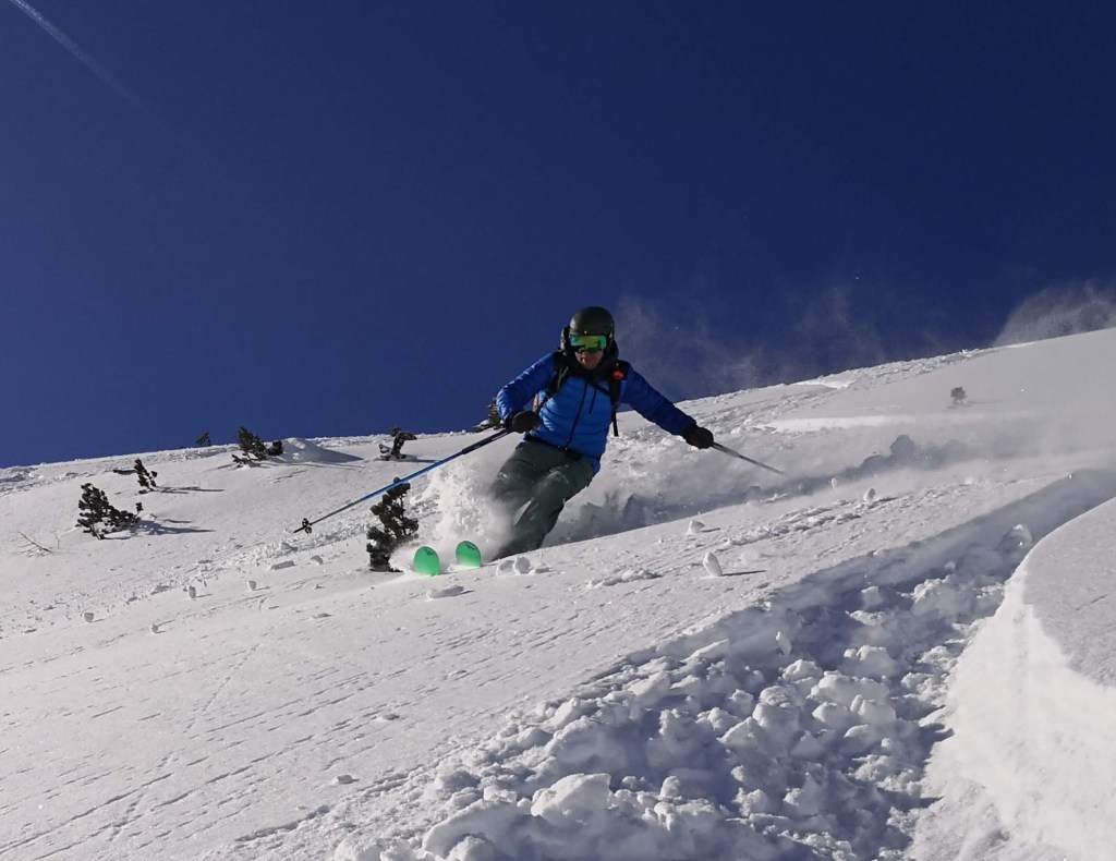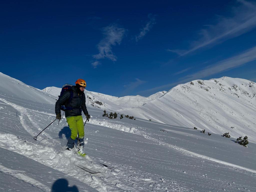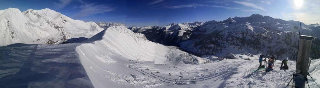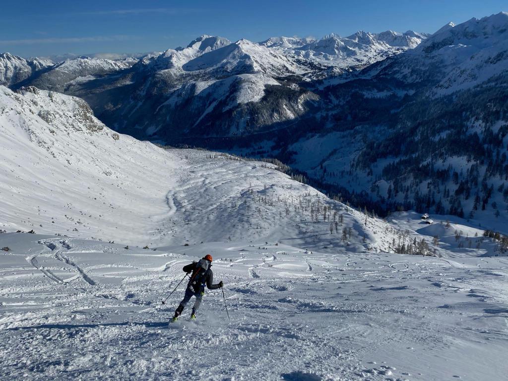 Ob našem zadnjem obisku 5 tednov nazaj je bilo na gori več kot en meter novega snega, kar nam je kljub znatnim naporom, preprečilo vzpon na vrh gore. Danes pa je bilo v Gnadenalmu samo 10 cm novega snega. Špura pa je že bila. Tako, da smo napredovali zelo hitro. Vrh gore smo dosegli samo v eni uri in pol. Poleg tega nas je pričakalo sončno vreme in popolno brezveterje. Smuka v dolino pa je bila najboljša letos doslej (pa jih imam že 18 za sabo). Pršiča je bilo povsod do vratu. Ko je že kazalo, da bo tura v vseh elementih popolna, se je nenadoma, tik pod kolegico, sprožil snežni plaz. Imela je precejšnjo srečo, da jo ni zajel. Zato smo zatem smučali bolj previdno. Pod kočo Südwiener Hütte je še vedno več kot en meter snega. Vendar je brez podlage in je ob obratih škrtalo. Na planini Gnadenalm so medtem potegnili proge za tek na smučeh.