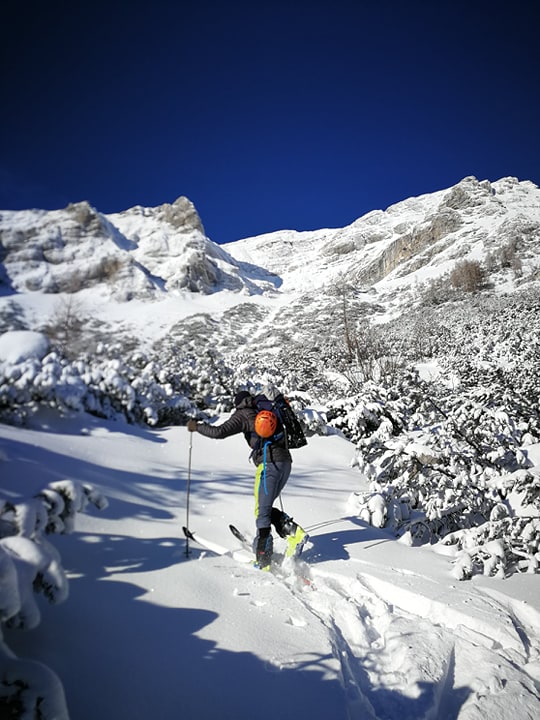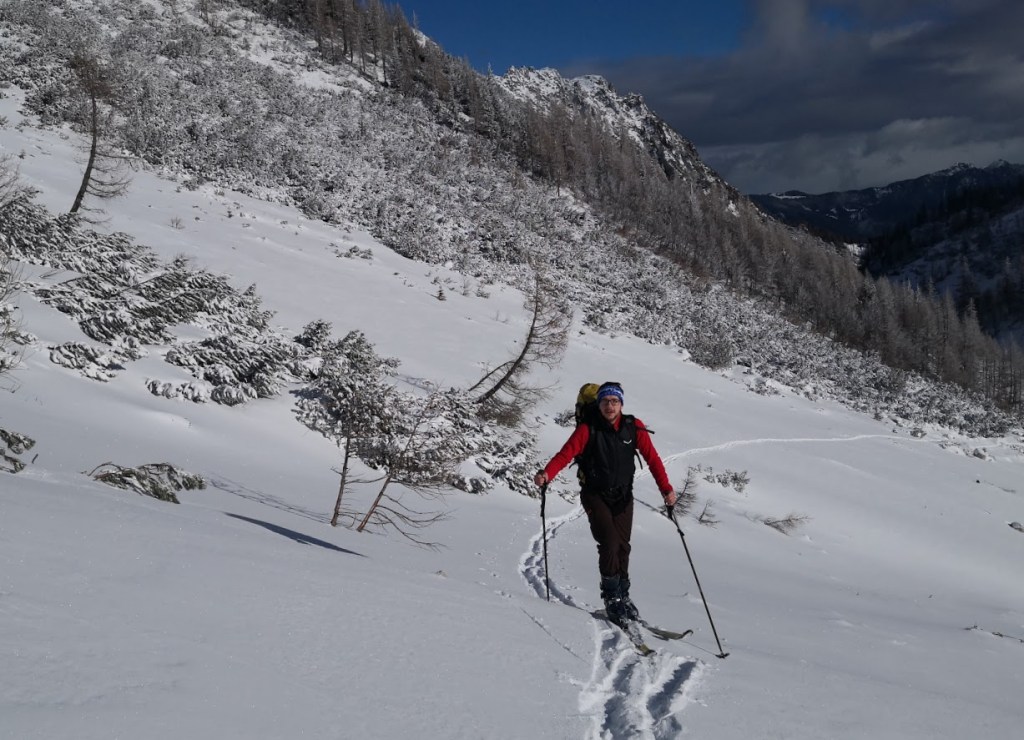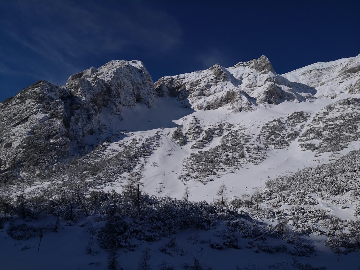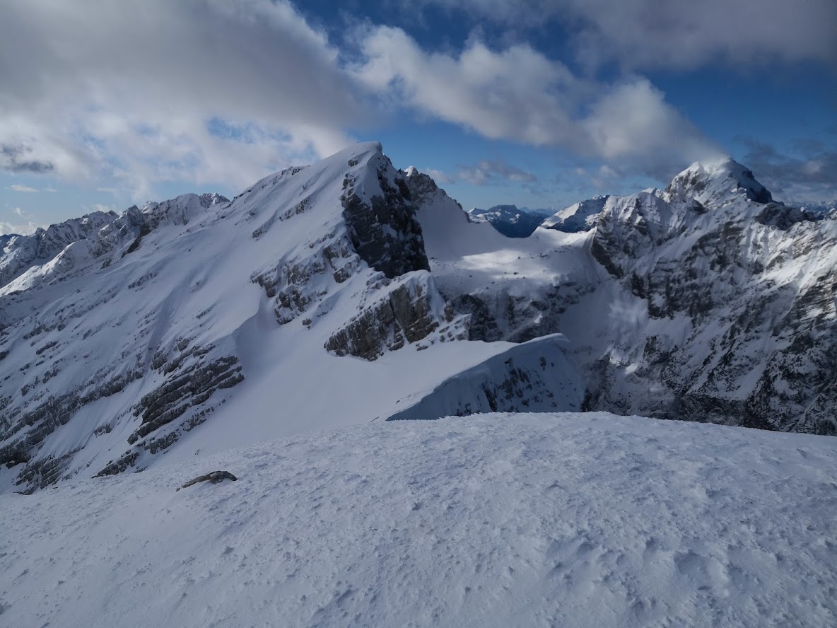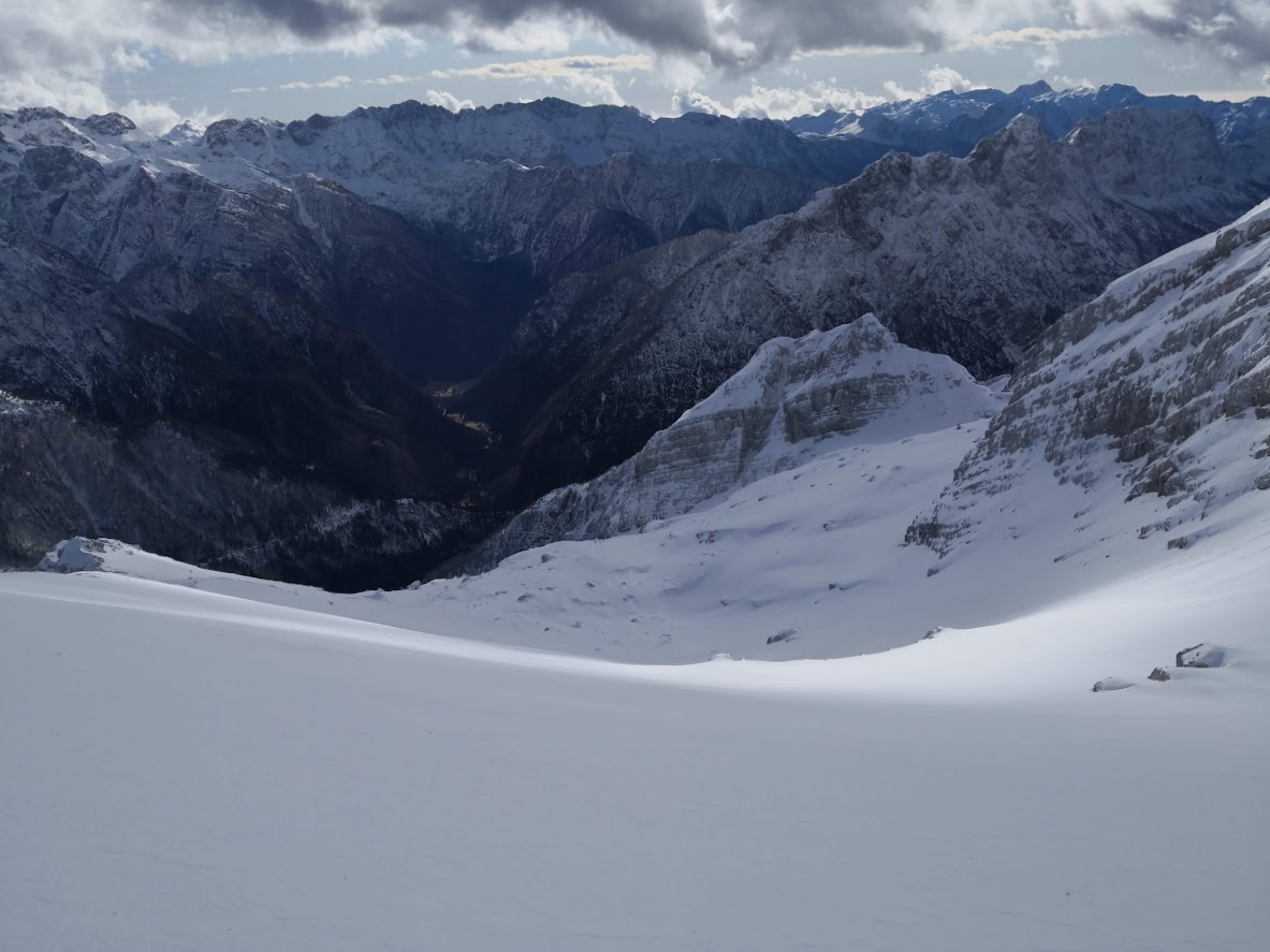 Bojan Ambrožič posted: ” Cesta na Vršič je bila zjutraj deloma zasnežena, a brez težav prevozna do vrha. Presenečena sva bila, da sva bila prva turna smučarja. Spodaj na Vršiču je še zelo malo snega. Višje pa je snega dovolj. Sneg je bil za hojo zelo nenavaden – nekakšne kroglic”
