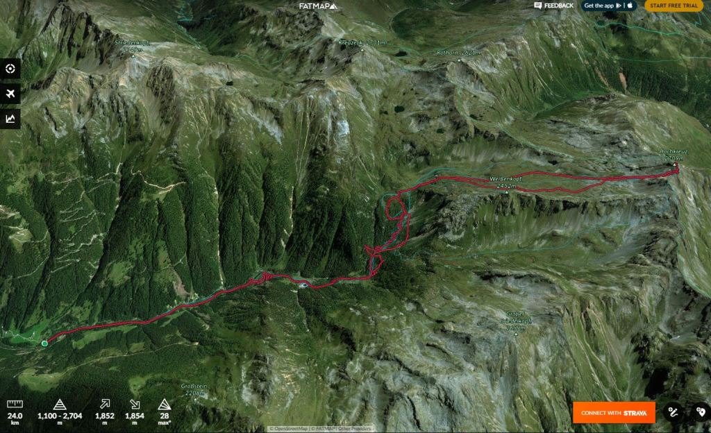 Izhodišče za turo je isto, kot za Kreuzeck – dolina Wöllatal. Vendar je bila tokrat cesta še bolj ledena. Tako, da smo avtomobile pustili kar dober kilometer pred hidroelektrarno (na višini 1100 m). Cesta je bila zoprno ledena tudi za hojo s smučmi. Še slabše je bilo potem na planinski poti med jezom in lovsko kočo Obere Gösnitzer Hütten. Lepši del ture se je začel nad planino Staller Wölla. Tu špura ves čas poteka po zelo široki in položni dolini Staller Weißen. Vse skupaj zelo spominja na hojo po ledeniku. Po 11 km hoje pot pripelje v zatrep doline in se vzpne na sedlo med Swarzwandkopfom in Hochkreuzom. Od sedla do vrha Hochkreuza smo šli peš. Ker je gora točno na sredi pogorja se z nje odpirajo res dobri razgledi na vse strani. Smuka je prvih par metrov rahlo delikatna (ozek greben, kjer so vmes skale). Pod sedlom pa ni več strmo. Pravzaprav je obraten problem, saj večina spusta poteka po preveč položnem terenu. Sneg je bil večinoma trd in ponekod skorjast. Pod lovsko kočo in spodaj na cesti pa smo se pobijali čez ledene odseke. Torej kakšnih silnih smučarskih užitkov danes res nismo bili deležni, saj že sama narava te ture v osnovi tega ne dovoljuje. Pač pa gre iz gorniškega vidika za zelo lepo turo, ki jo zaznamujeta tudi precejšnja višinska razlika (1700 m) in razdalja (23 km).