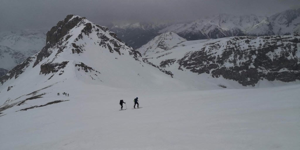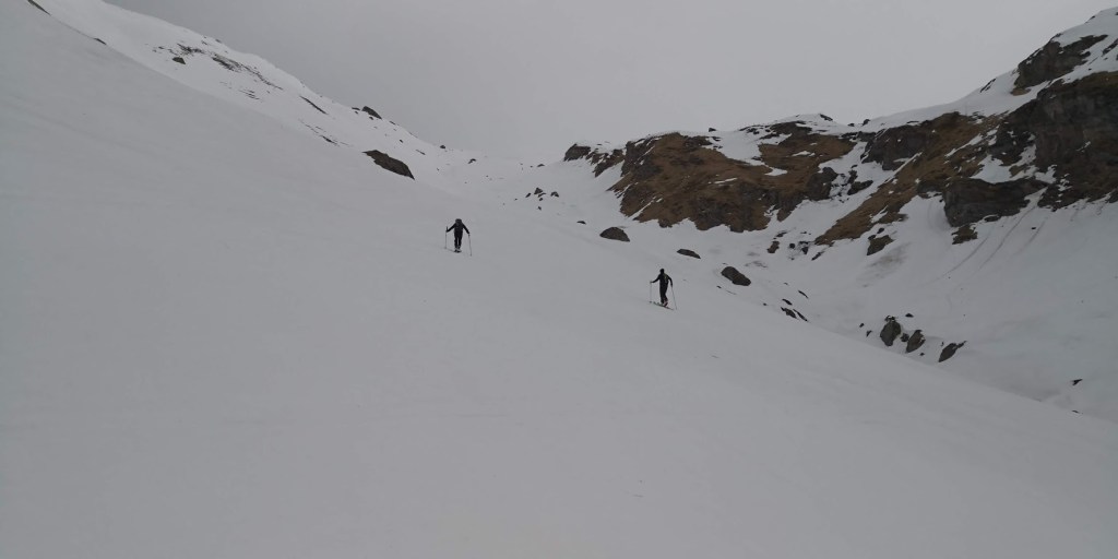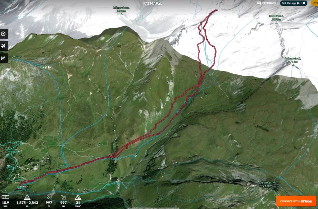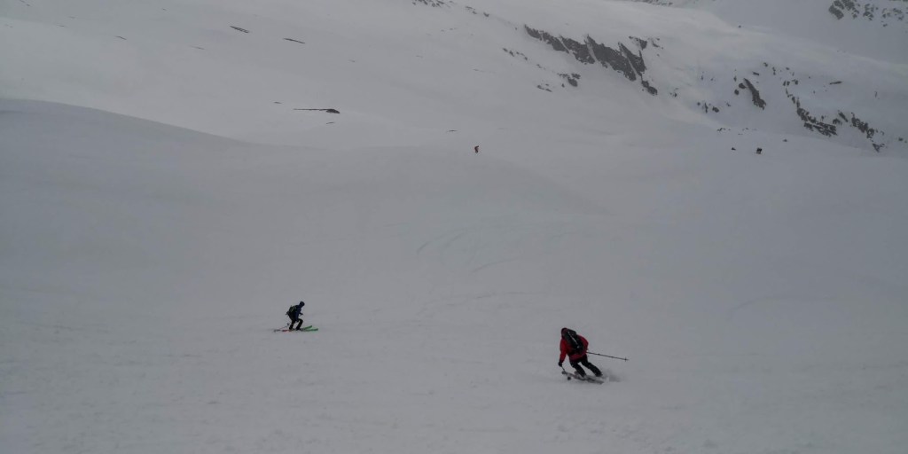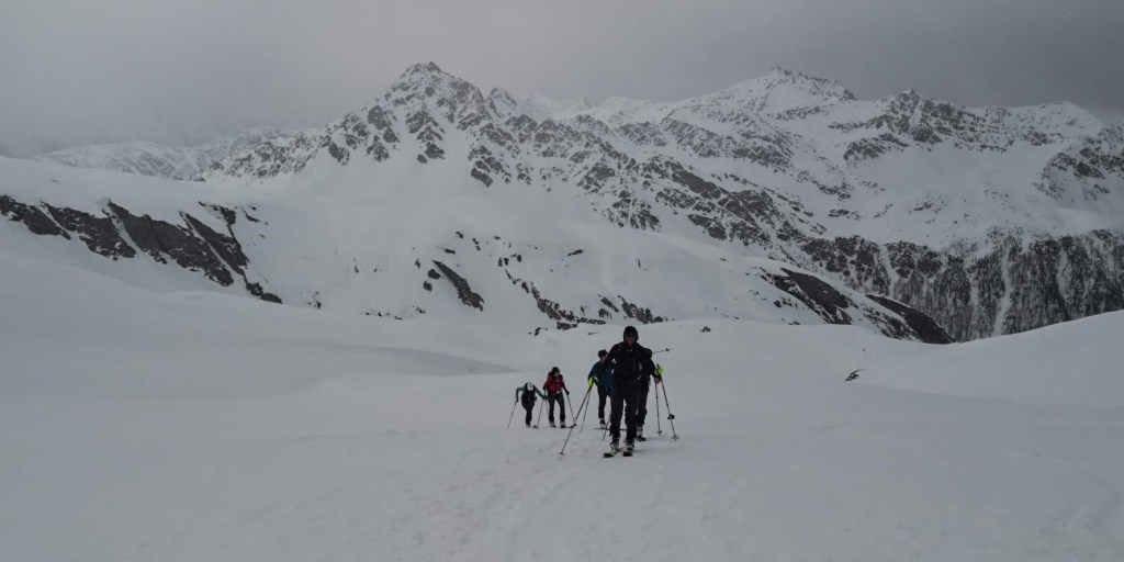 Izhodišče je hotel Sadnighaus, ki leži na višini kar 1876 m. Visoka nadmorska višina izhodišča je trenutno zaradi pomanjkanja snega na osojnih pobočjih kar nujna. Danes je bila navkljub slabemu vremenu prisotna popolna odjuga. Ves čas je padal tudi rahel dež, višje pa sodra oziroma sneg. Tura je orientacijsko in tehnično nezahtevna. Gre tudi za enega redkih turnih smukov v zadnjem času, kjer nam na začetku ni bilo treba nič hoditi po cesti. Edino mesto, kjer je treba par metrov gor in dol – je po enem kilometru, ker je treba prečiti potok. Nato špura sledi širokemu žlebu, ki se na nadmorski višini 2400 m prevesi v planoto imenovano Ruden. Na koncu planote smo nadaljevali na sedlo Butzentörl (2725 m) in nato po kratkem grebenu na vrh Stellkopfa. Na vrhu pretiranih razgledov ni bilo, ker je bila večina sosednjih gora v megli. Sneg je bil zaradi visokih temperatur voden. Do višine 2500 m je bila smuka še dobra. Nižje pa je bil sneg tako južen, da je mestoma cukalo. Nestrpno čakamo nov sneg.