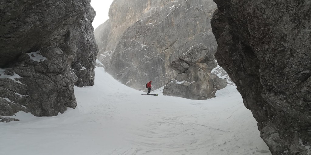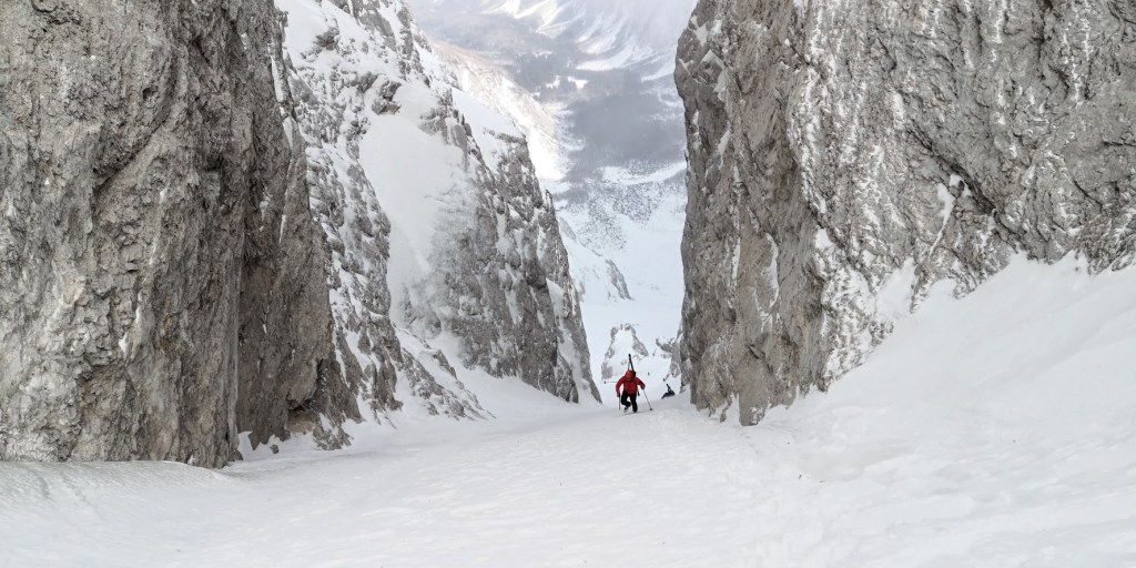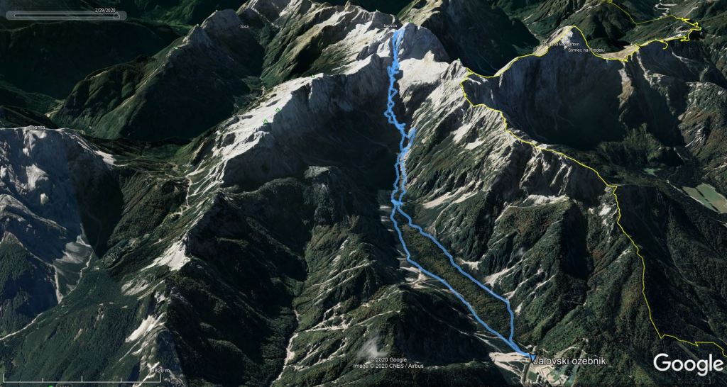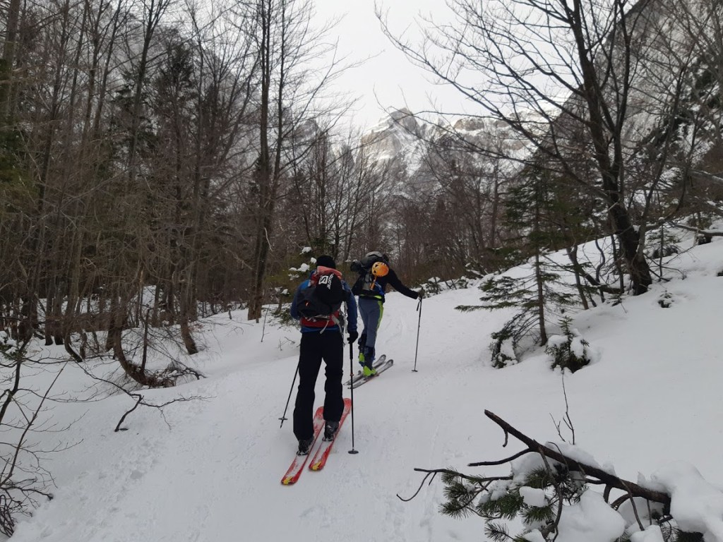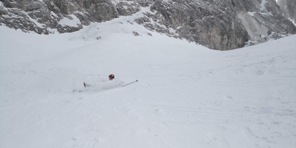 Najprej nerodno drsanje po zaledeneli cesti s Planice v Tamar in nato naprej proti zatrepu doline. Snega je več, kot en slab mesec nazaj. Žal pa smo imeli zelo slabo vreme. Pihat je zelo močan veter, ki je s seboj nosil oblake sneg. Vmes sem se že začel spraševat, v čem je sploh smisel našega početja. Ampak s trmo vse da. Kolegi me dostikrat zafrkavajo, ker nosim zelo velik nahrbtnik in ker mi je premajhen še kaj na njem. Tokrat mi je skorajda sva oprema prišla prav – primaloft puhovka in še čez njo oblečena puhovka iz gosjega puha sta mi omogočila, da sem se počutil toplo, tudi če je bil občutek mraza krepko pod minus 20 °C. Nekdo pred nami nam je zgazil ozebnik. Zato je skozenj šlo ekspresno hitro. Poleg tega v ozebniku ni bilo vetra. Ker sta kolega zaostala in me je še vedno zeblo sem izkoristil “prosti čas”, da se vmes en del ozebnika presmučal. Razmere so bile super. Potem pa spet peš nazaj gor. Na srečo na vrhu ozebnika ni močno pihalo. Vseeno smo vsi komaj čakali, da se zapodimo skozi koluar.