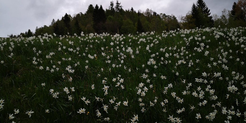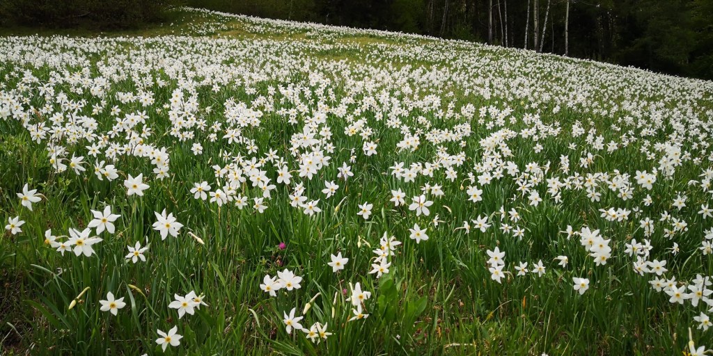 Trenutno cvetijo narcise v Plavškem ter Javorniškem Rovtu. Približno 20 % narcis je še v popkih, ostale pa so že v razcvetu. Tako, da ocenjujem, da je ta vikend vrhunec cvetenja. Narcis na Golici še ni. Tam bodo glede na izkušnje iz preteklih let predvidoma začele cveteti čez dva tedna.