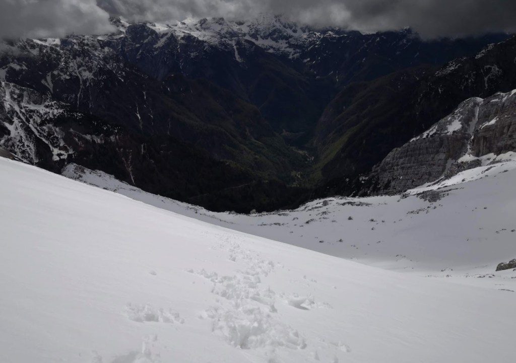 Zaradi karantene v hribih nisem smučal več kot en mesec (od 29. marca). Zato niti nisem več vedel kakšne so še snežne razmere v hribih. Preverit sem jih šel na Vršič.