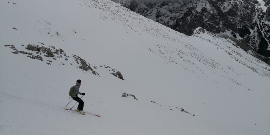 Smuka je bila slaba. Snega je sicer dovolj. Vendar je nov sneg dobesedno gnoj, ki močno zavira smučanje. Poleg tega se mi je nekajkrat odpeljal v obliki manjših kložastih plazov. Počakal sem, da se kloža odpelje. Nato, pa sem lahko smučal po zbitem srenjcu pod kložo. Mislil sem nadaljevati še na Veliko Mojstrovko, kjer so bile videti boljše snežne razmere, a sem se zaradi megle in zlomljene palice premislil. Pod Vratci sem se držal desno pod steno, kar mi je omogočilo, da sem se pripeljal do 10 min hoje od prelaza. Najbrž nikjer drugje v slovenskih hribih trenutno ni tako malo hoje do začetka snega. Če pa je, pa mi prosim javite, pa grem takoj odsmučat.