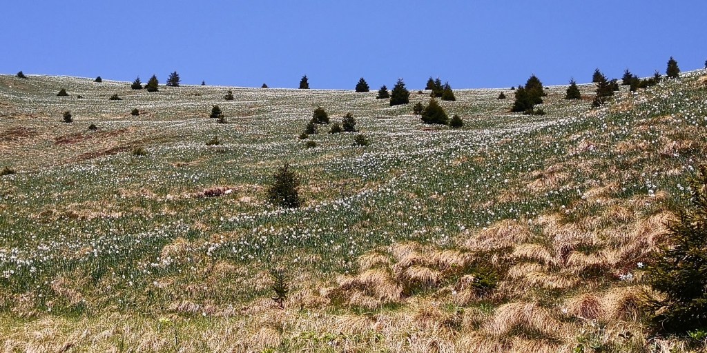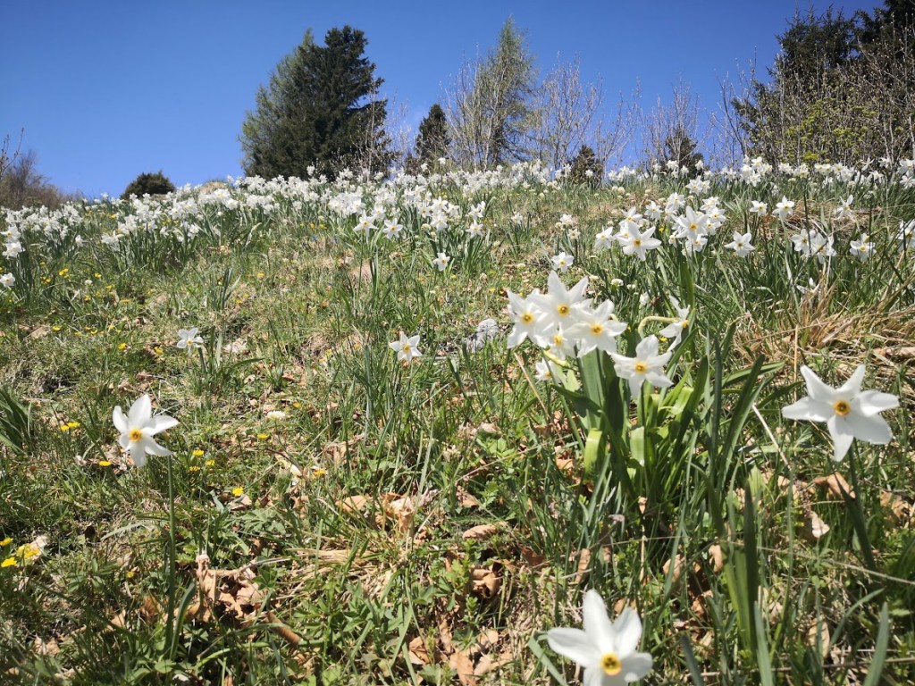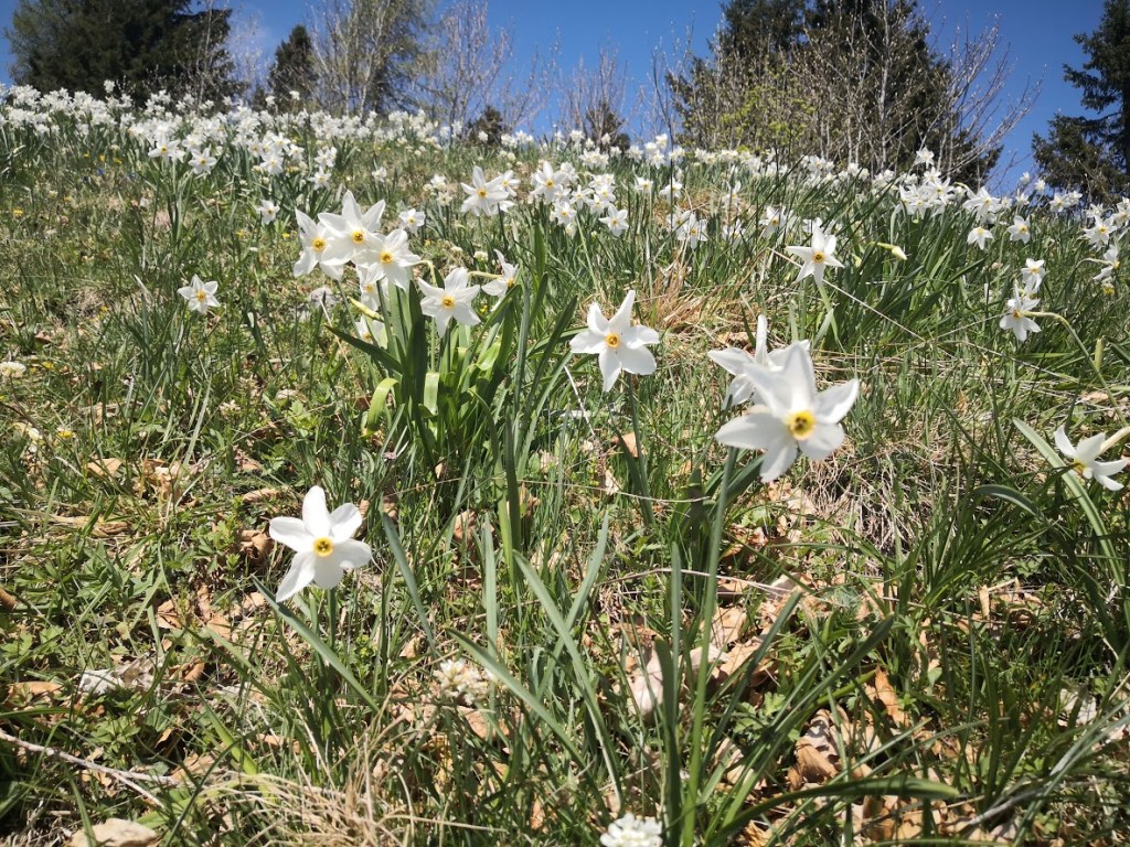 Če pogledam statistiko zadnjih let, narcise na Mali Golici začnejo cveteti v drugi polovici maja (na Golici pa jih sploh ni!). Sedaj smo v začetku maja in prve narcise že cvetijo, večina pa jih je še v popkih. Vrhunec cvetenja se pričakuje čez en teden dni. Zaradi suše travniki niso tako zeleni, kot je to običajno. Najbolj pa me je veselilo, da je prišlo narcise gledat tako veliko število ljudi. Lepo je videti spet prijatelje, planince, hribovce v gorah. Če vas zanima kje točno so rastišča narcis na Golici, sem jih podrobno dokumentiral v tem blogu.