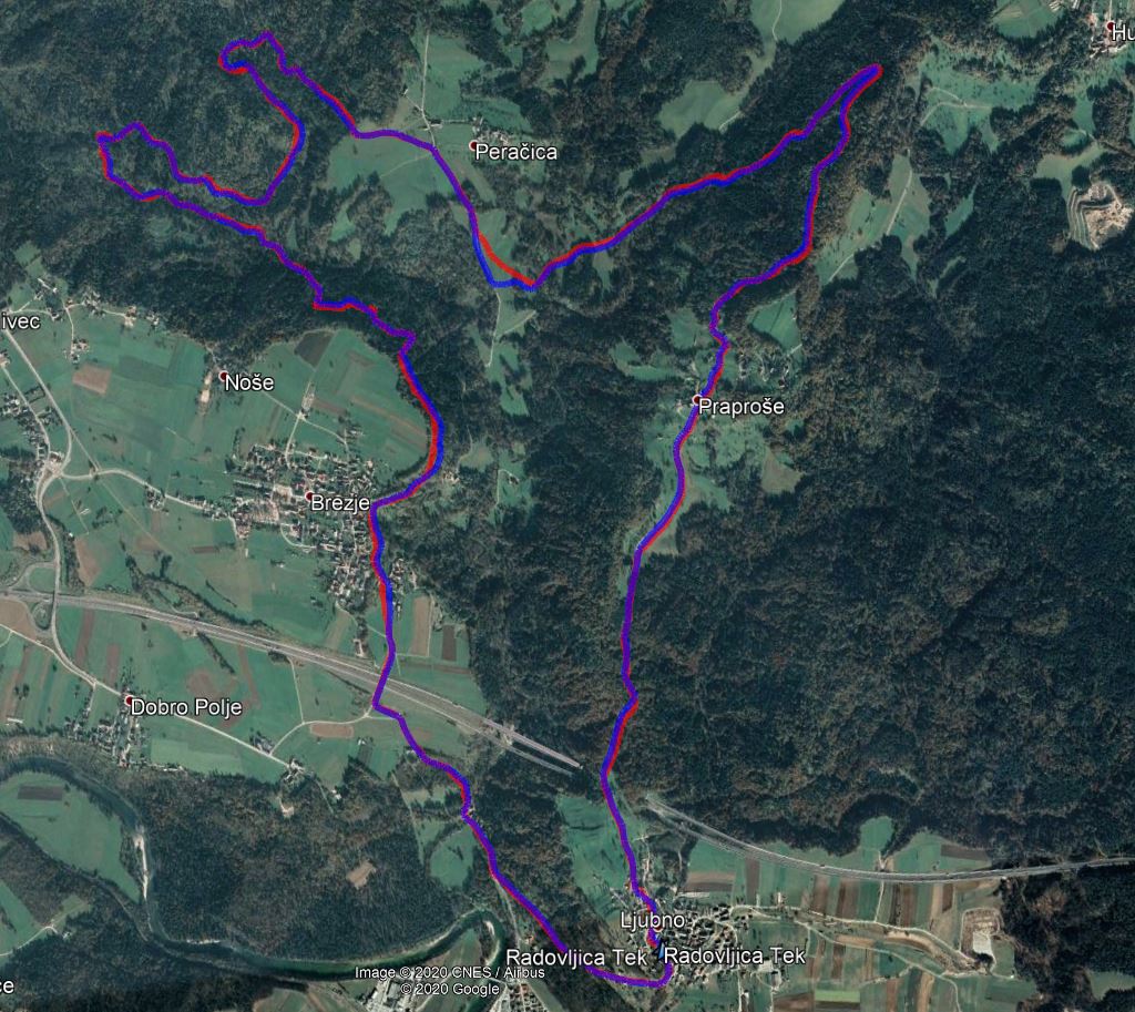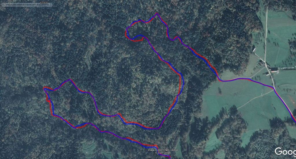 Najpomembnejša lastnost ure mi je zagotovo avtonomija baterije z vklopljenim GPS-om, saj je to življenjsko pomembno iz vidika varnosti v gorah. Fenix 5X je na začetku z vklopljenim GPS-om zdržala okoli 16 ur. Sedaj po dveh letih pa se je njena avtonomija skrčila na 12-13 ur. Ura Fenix 6X ima bistveno boljšo baterijo. Dejansko mi jo na nobenem testu ni uspelo do konca izprazniti (ker preprosto trenutno ne delam dovolj dolgih tur). Najdlje sem jo imel na turi 7 ur, kar mi jo je izpraznilo za 11 %. Potem sem “aktivnost tek” pustil prižgano še celo noč in še cel naslednji dan v upanju, da se mi baterija izprazne, da bi vam lahko dal natančen podatek kakšna je avtonomija baterija. Vendar se po preteku 24 ur na avtonomiji baterije ni skorajda nič poznalo (zato sem test prekinil). Očitno če smo nekje pri miru – ura preklopi v varčevanje in se ne prazni tako hitro kot med “pravo aktivnostjo”. Skratka, ura se s prižganim GPS + GLONASS-om prazne povprečno 1,6 % na uro, kar pomeni da če to ekstrapoliram znese neverjetnih 60 ur, kar je dobesedno astronomski napredek v primerjavi s predhodnico. Ura Fenix 6X za navigacijo sicer omogoča poleg že omenjenega Ameriškega GPS-a in Ruskega GLONASS-a, še najnovejši Evropski navigacijski sistem Galileo. Na testu sem opazil, da je sled lepša in bolj natančna, saj ura zazna npr. primer da se ne gibljem (glejte slike spodaj). Poleg avtonomije baterije, mi je pri uri pomembna tudi njena izjemna robustnost in zanesljivost pri uporabi v vseh vremenskih razmerah: in ta je pri seriji ur Fenix neizpodbitna. Ura Frnix 5X mi je v vsem času uporabe doslej “šteknila” samo trikrat – po resetu se je ura prižgala nazaj – sled pa je v vseh primerih ostala. Fenix 6X uporabljam premalo časa, da bi lahko trdil, da enako velja tudi za to uro – vendar bom zelo razočaran, če bo njena statistika zanesljivost kaj drugačna.