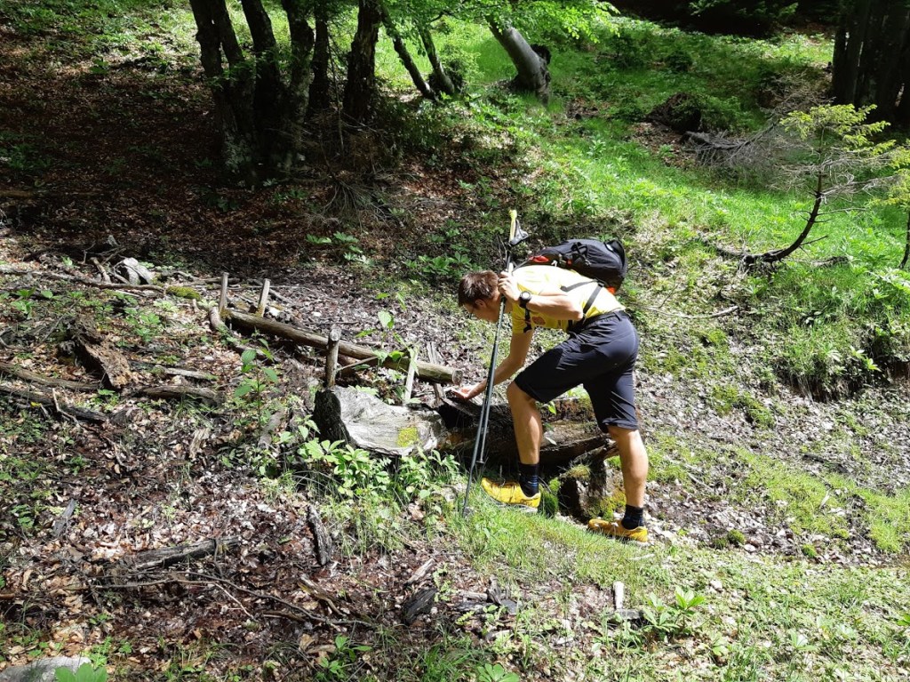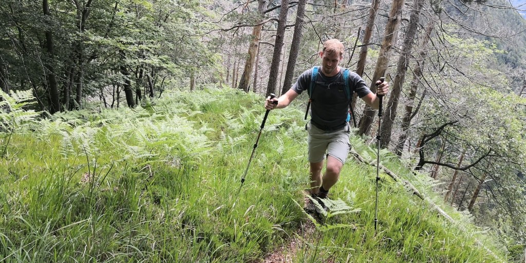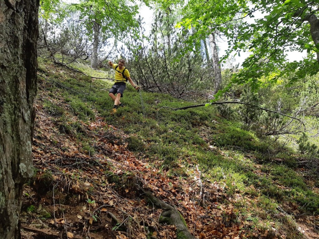 Pot poteka skozi gosto ruševje