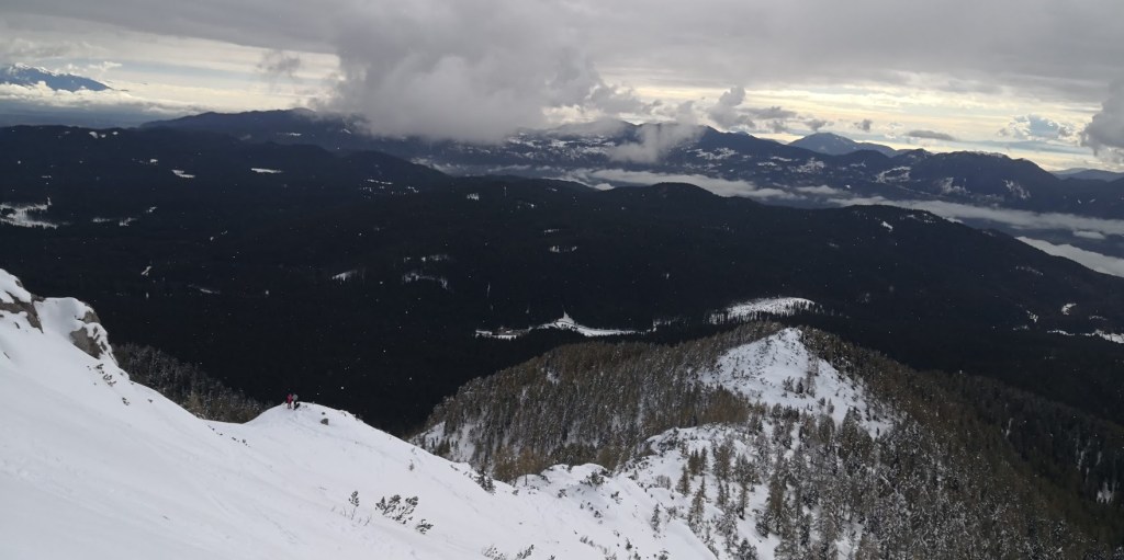 Snega na makadamski cesti do smučišča ni. Pri vojašnici pa zaradi gradbenih del ni prav veliko prostora na parkirišču. Zato je trenutno najbolje parkirati tik ob smučišču. Na smučišču je snega ravno toliko, da sem se lahko vzpenjal s smučmi. Tik pod Zlatimi vodami je bila očitno snežna meja, saj je od tu naprej snega precej. Na vrhu Viševnika sem ga z lavinsko sondo izmeril 70 cm. Sam vzpon je bil precej naporen, ker se mi je na psih delal cokla. Tik pod vrhom se je v grapo proti Konjščico odpeljal snežni plaz. Vršna flanka je bila sicer presenetljivo dobra za smučanje. Edini minus je, da je bil sneg rahlo skorjast. Ker je bilo dobro za smučat, sem se še enkrat povzpel na vrh. Tokrat s smučmi na nahrbtniku, saj so v tem času pohodniki utrdili že kar dobro gaz. Smuka pod Plesiščem ni bila več dobra, saj tam snega ne prekriva dreves in sem se občasno zatikal. Sneg pa je postal južen. Nekje sredi grape sem snel smuči in nadaljeval peš. Je pa nekaterim uspelo prismučati povsem do avta.